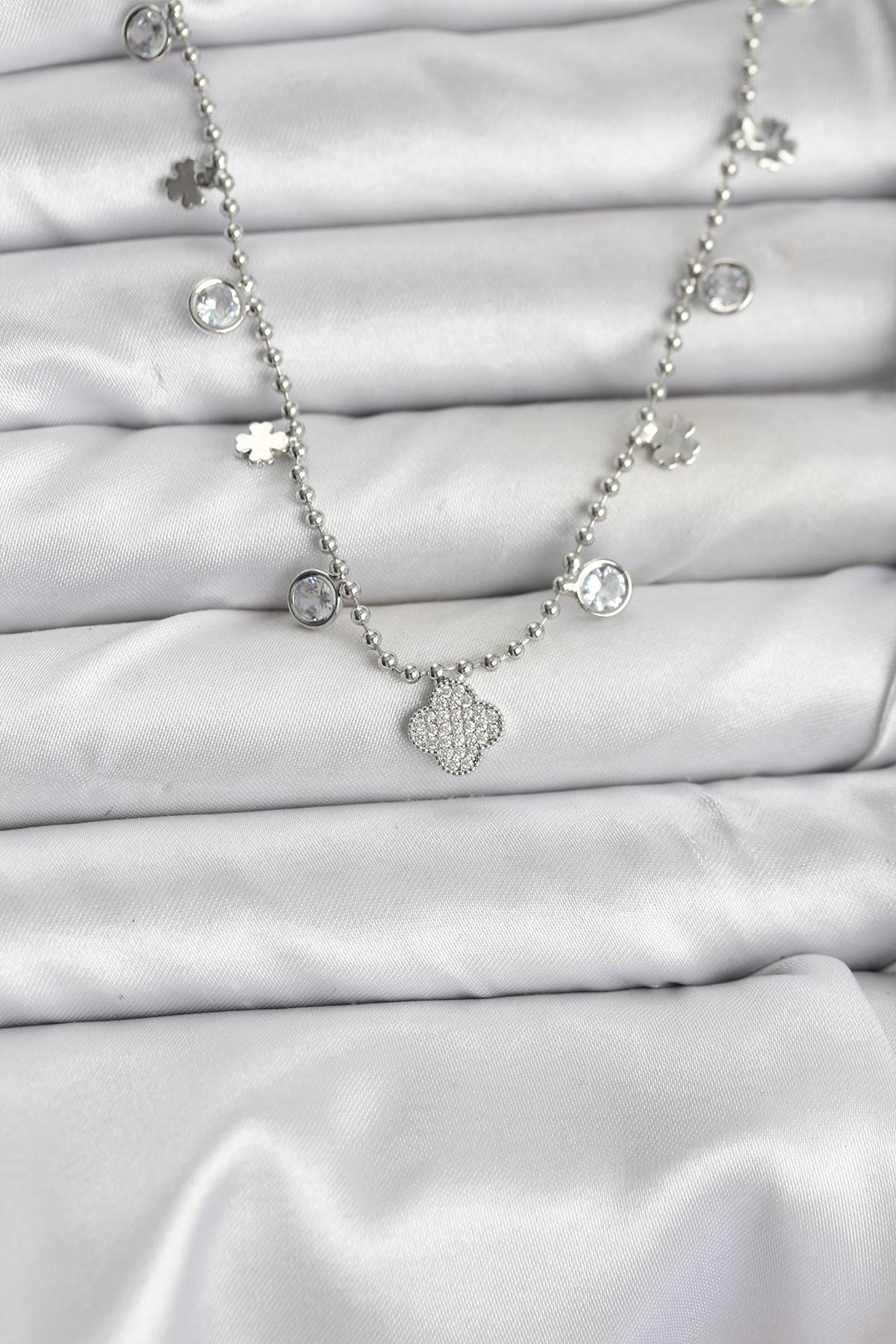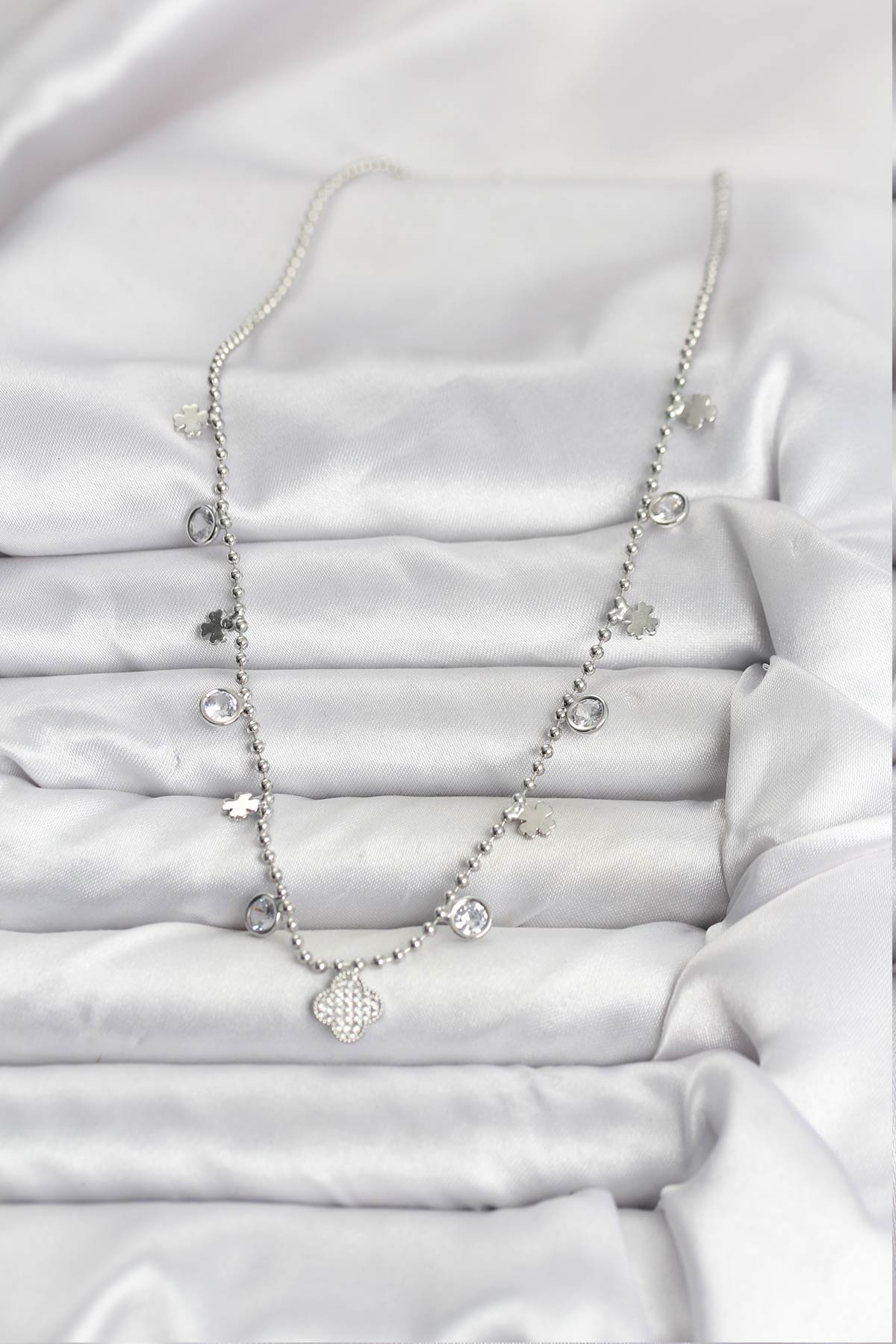 Tegan Pirinç Gümüş Renk Yonca Model Kadın Kolye TG27BKO10651