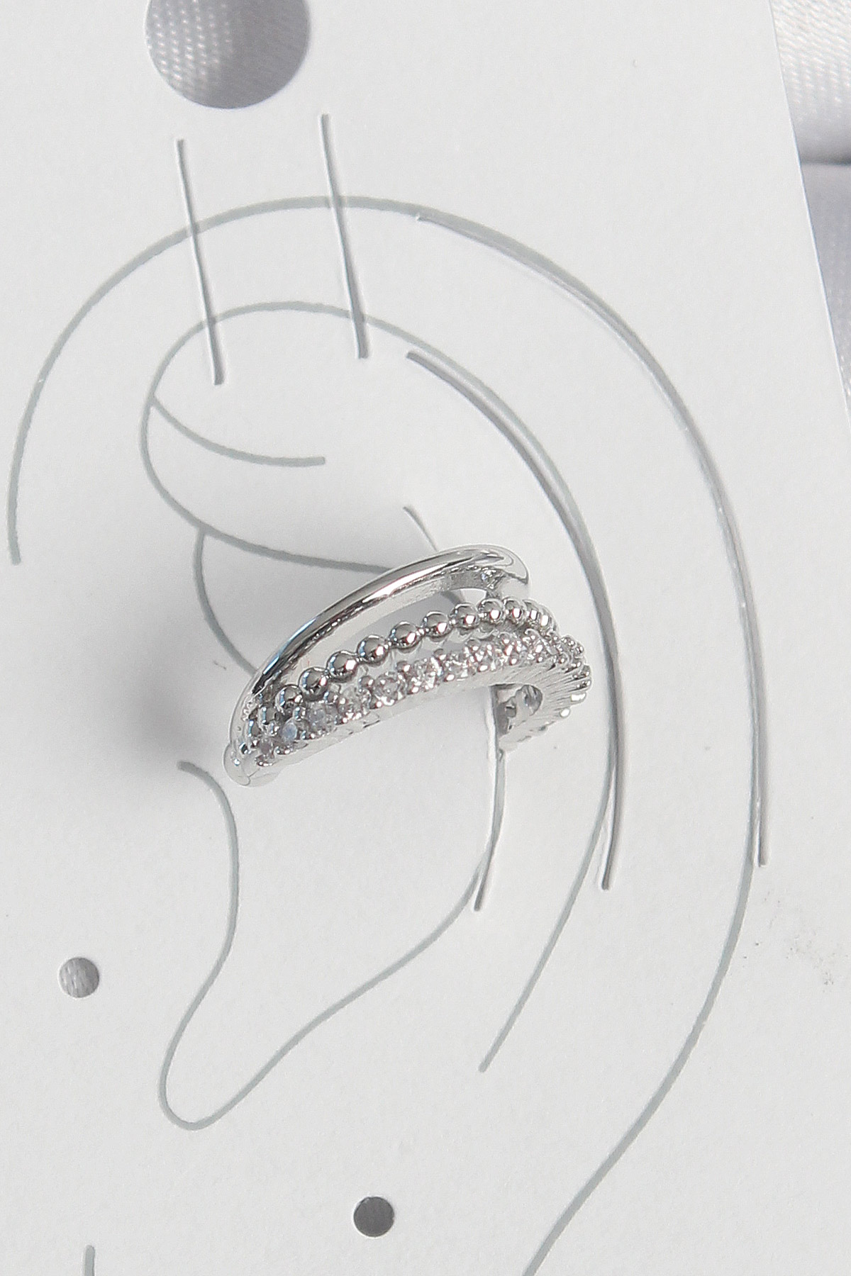 Tegan Pirinç Gümüş Renk Zirkon Taşlı 3’Lü Sıralı Kadın Kıkırdak Küpe TG27BKP10554
