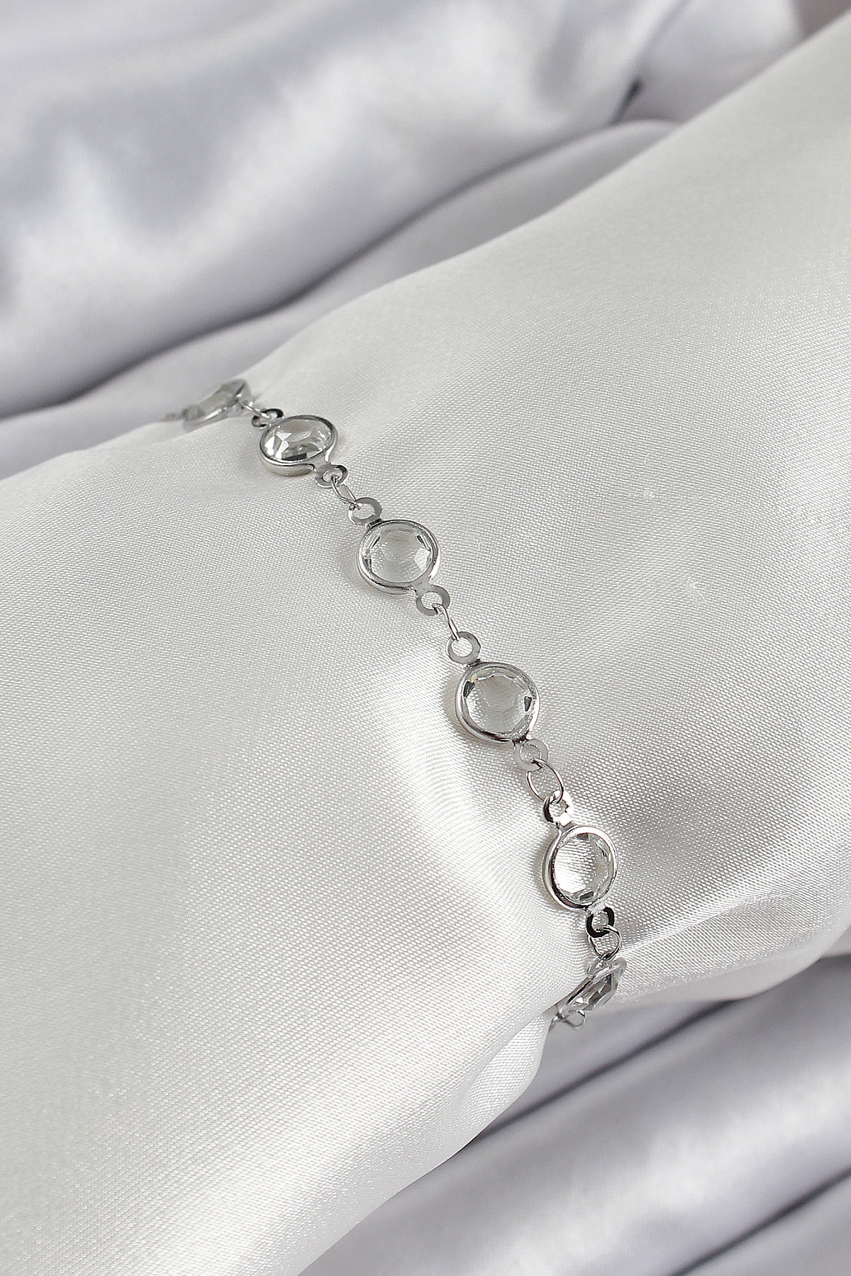 Tegan Pirinç Gümüş Renk Zirkon Taşlı Bileklik TG27BB7044