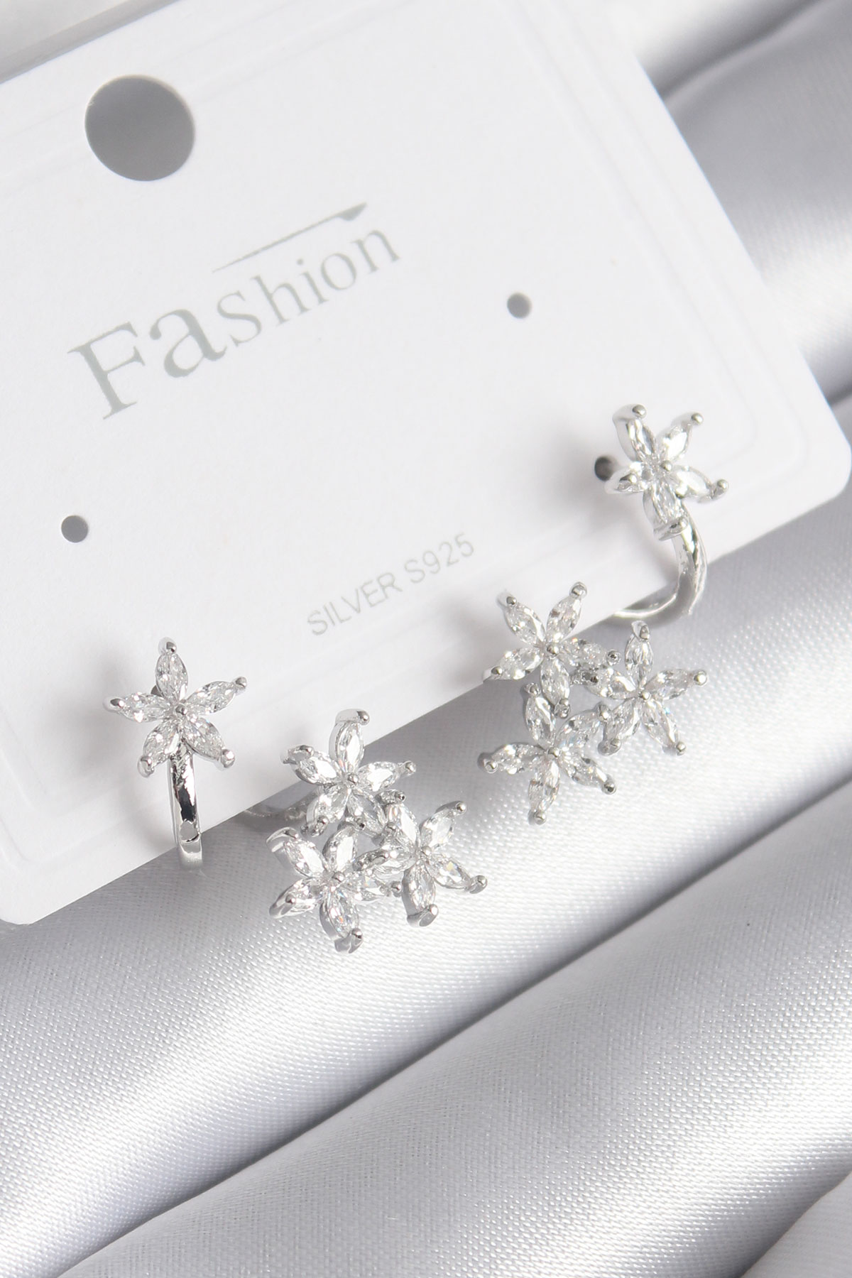 Tegan Pirinç Gümüş Renk Zirkon Taşlı Çiçek Tasarım Kadın Küpe TG27BKP8606