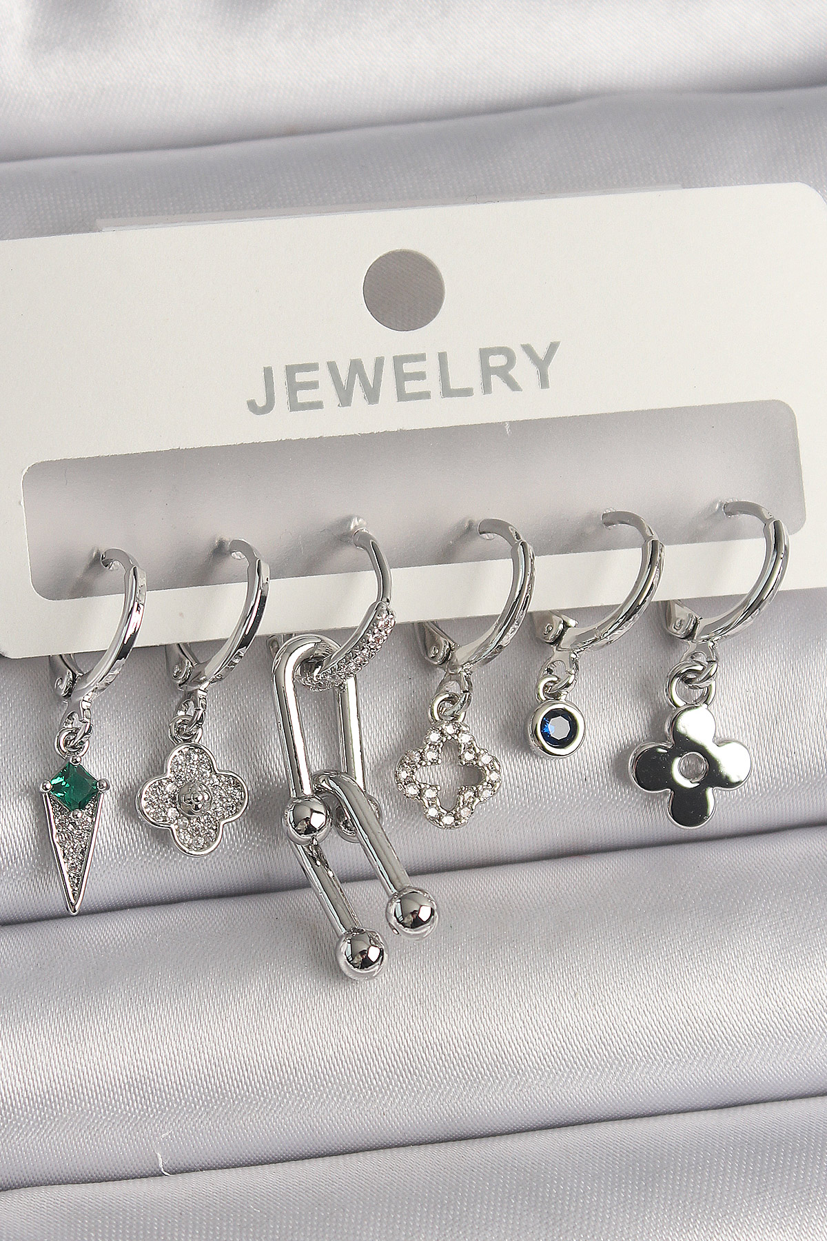 Tegan Pirinç Gümüş Renk Zirkon Taşlı Çoklu Figür Kadın Küpe Seti TG27BKP10097