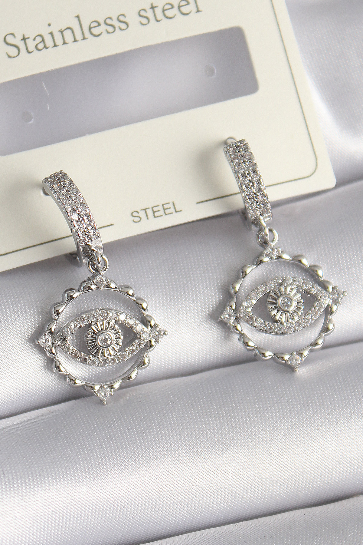 Tegan Pirinç Gümüş Renk Zirkon Taşlı Göz Model Kadın Küpe TG27BKP9734