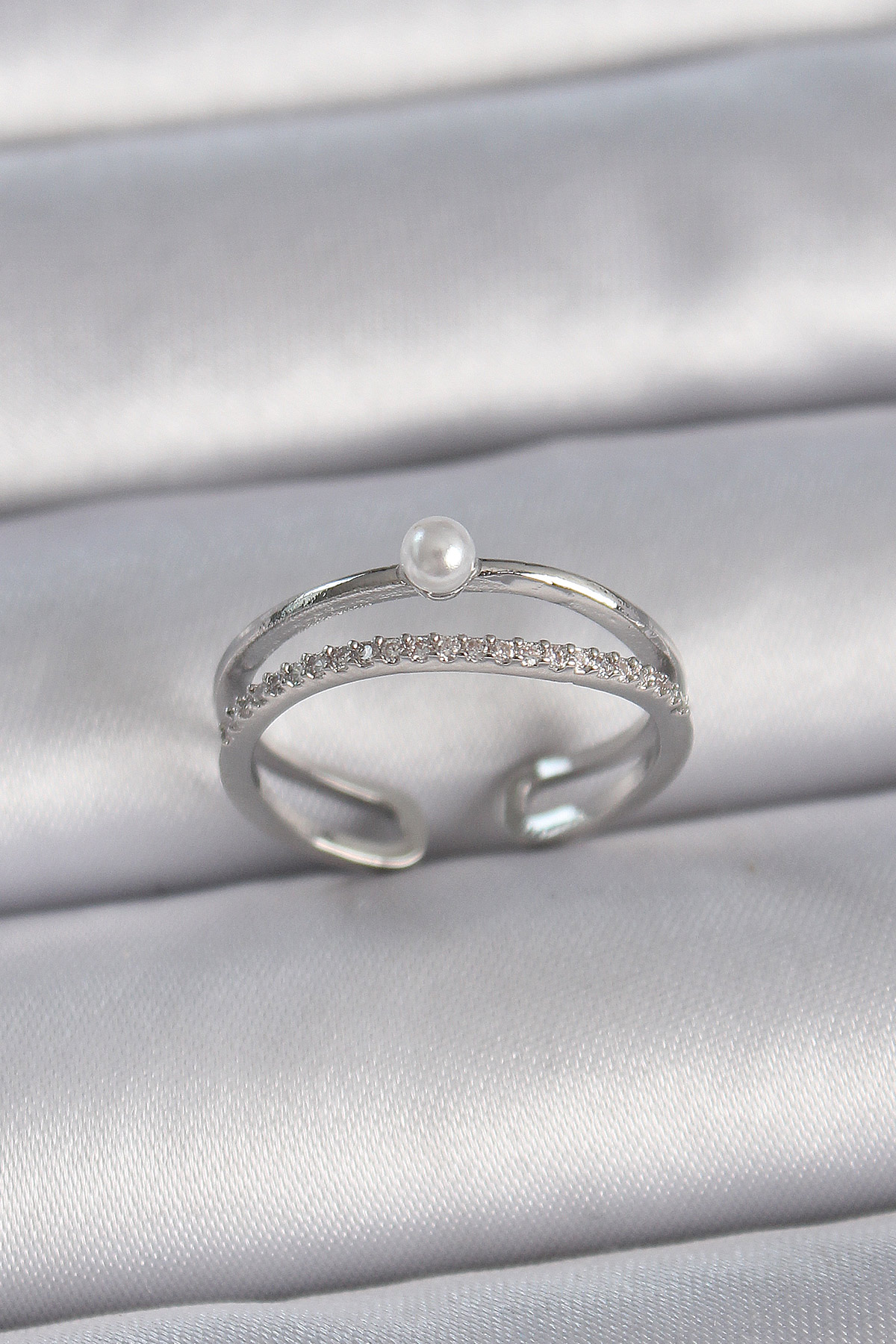 Tegan Pirinç Gümüş Renk Zirkon Taşlı İnci Detay Ayarlanabilir Model Kadın Yüzük TG27BYK3371