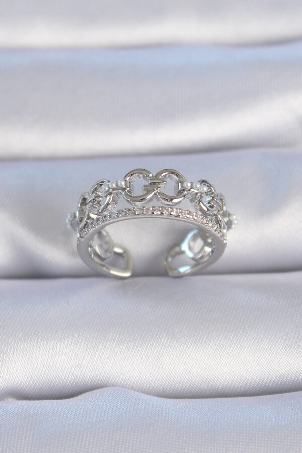 Tegan Pirinç Gümüş Renk Zirkon Taşlı İnci Detay Kadın Yüzük TG27BYK3337