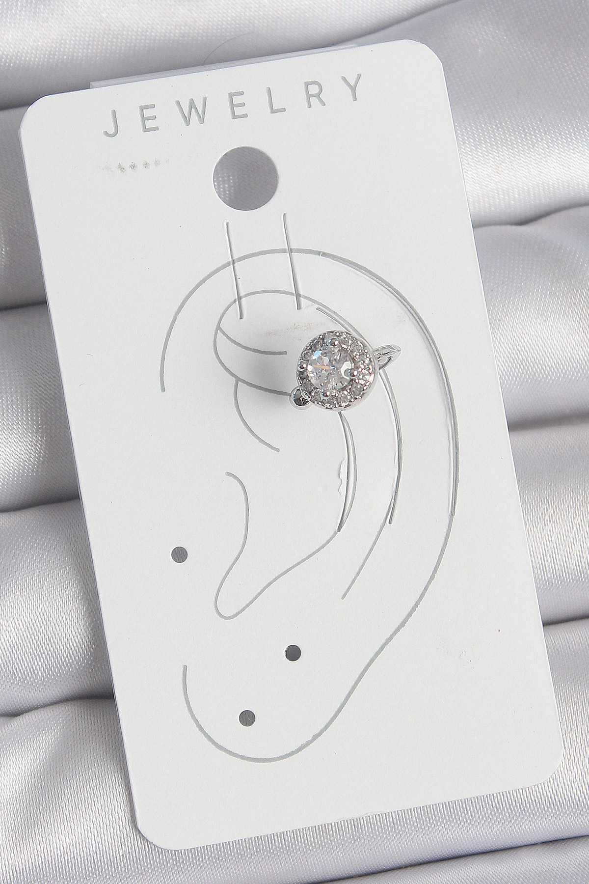 Tegan Pirinç Gümüş Renk Zirkon Taşlı Kadın Kıkırdak Model Küpe TG27BKP10559