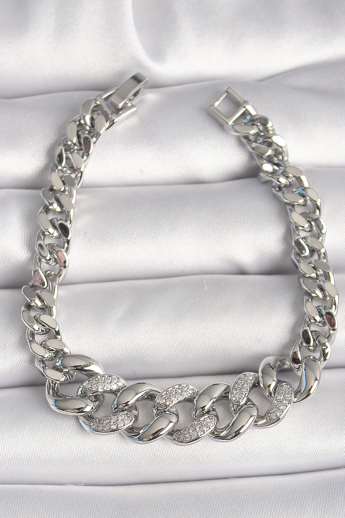 Tegan Pirinç Gümüş Renk Zirkon Taşlı Kalın Halka Model Kadın Bileklik TG27BB6854