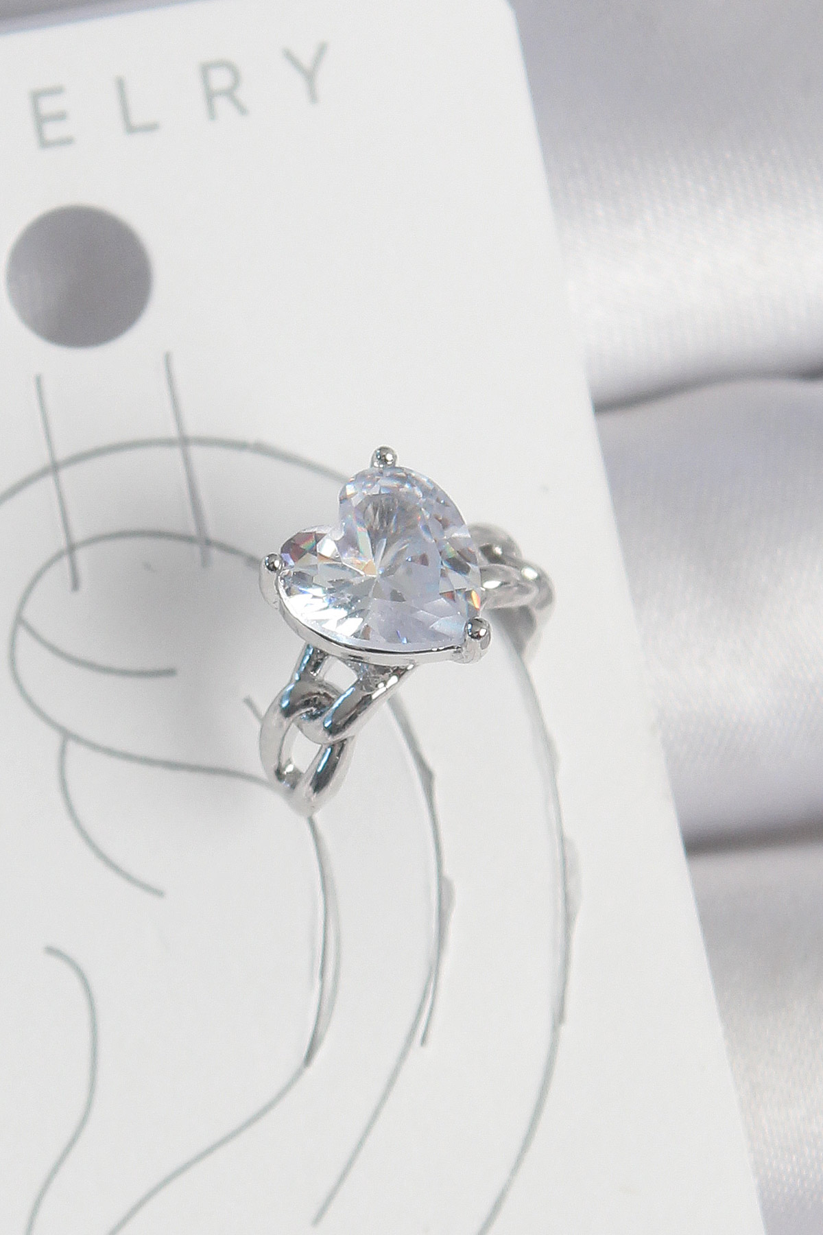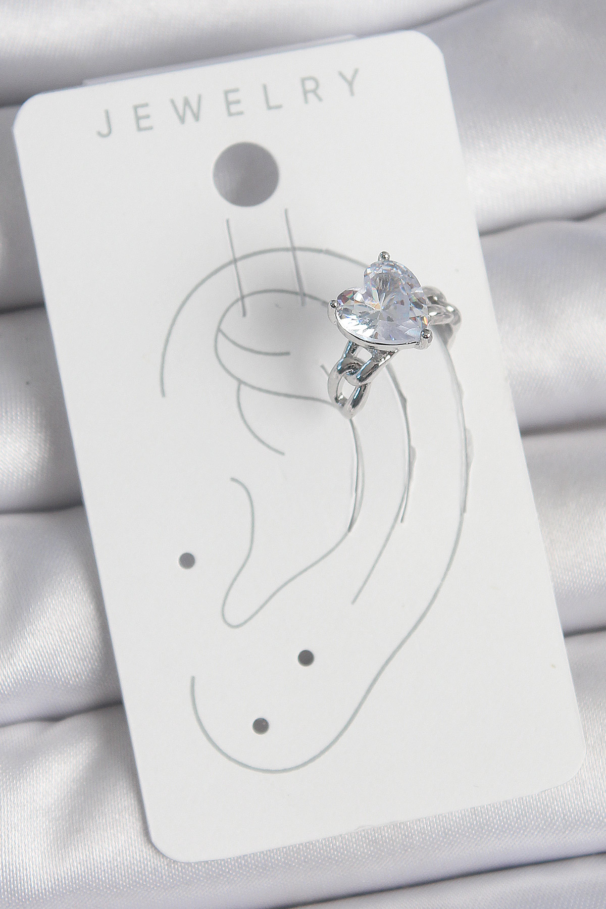 Tegan Pirinç Gümüş Renk Zirkon Taşlı Kalp Model Kadın Kıkırdak Küpe TG27BKP10563