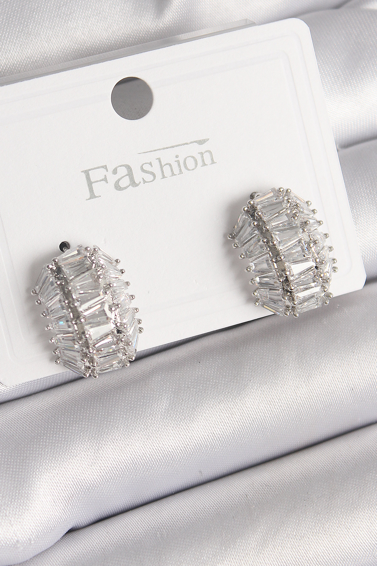 Tegan Pirinç Gümüş Renk Zirkon Taşlı Kaplumbağa Kabuğu Model Kadın Küpe TG27BKP9787