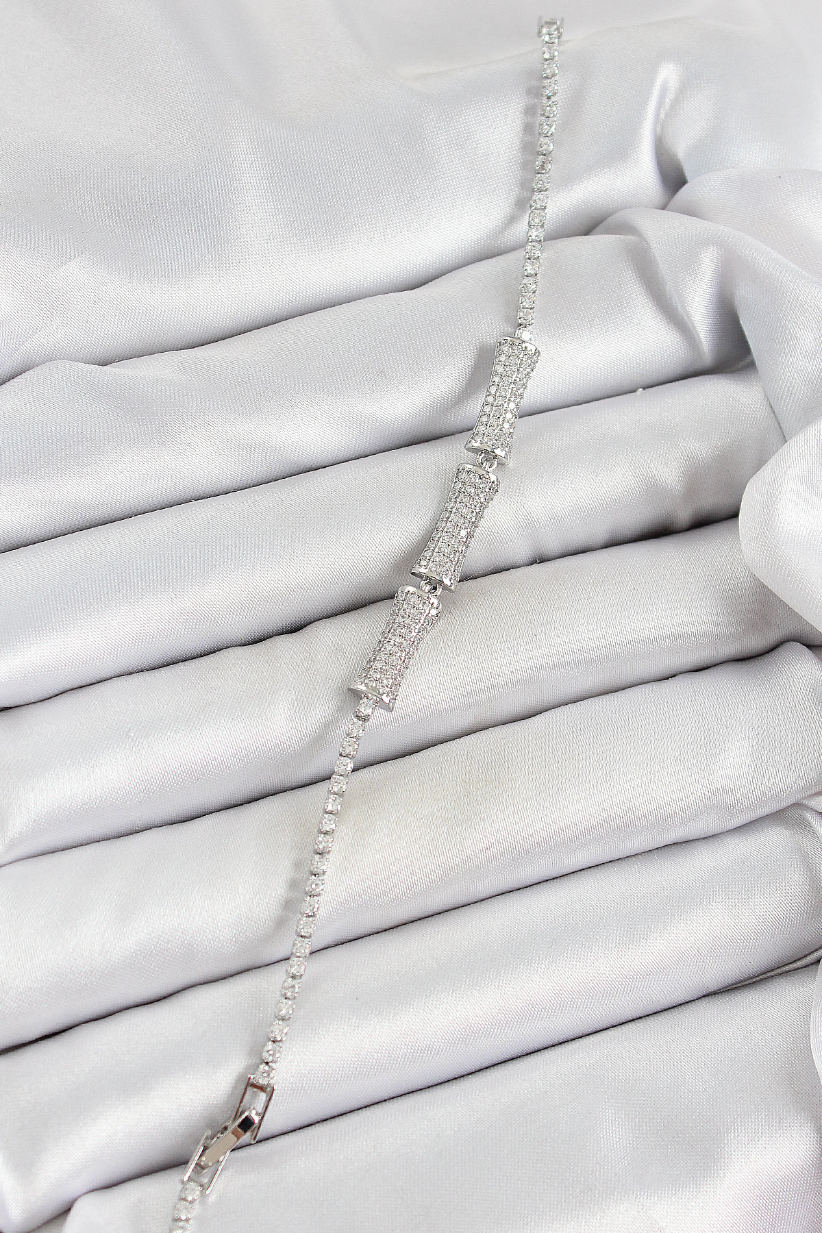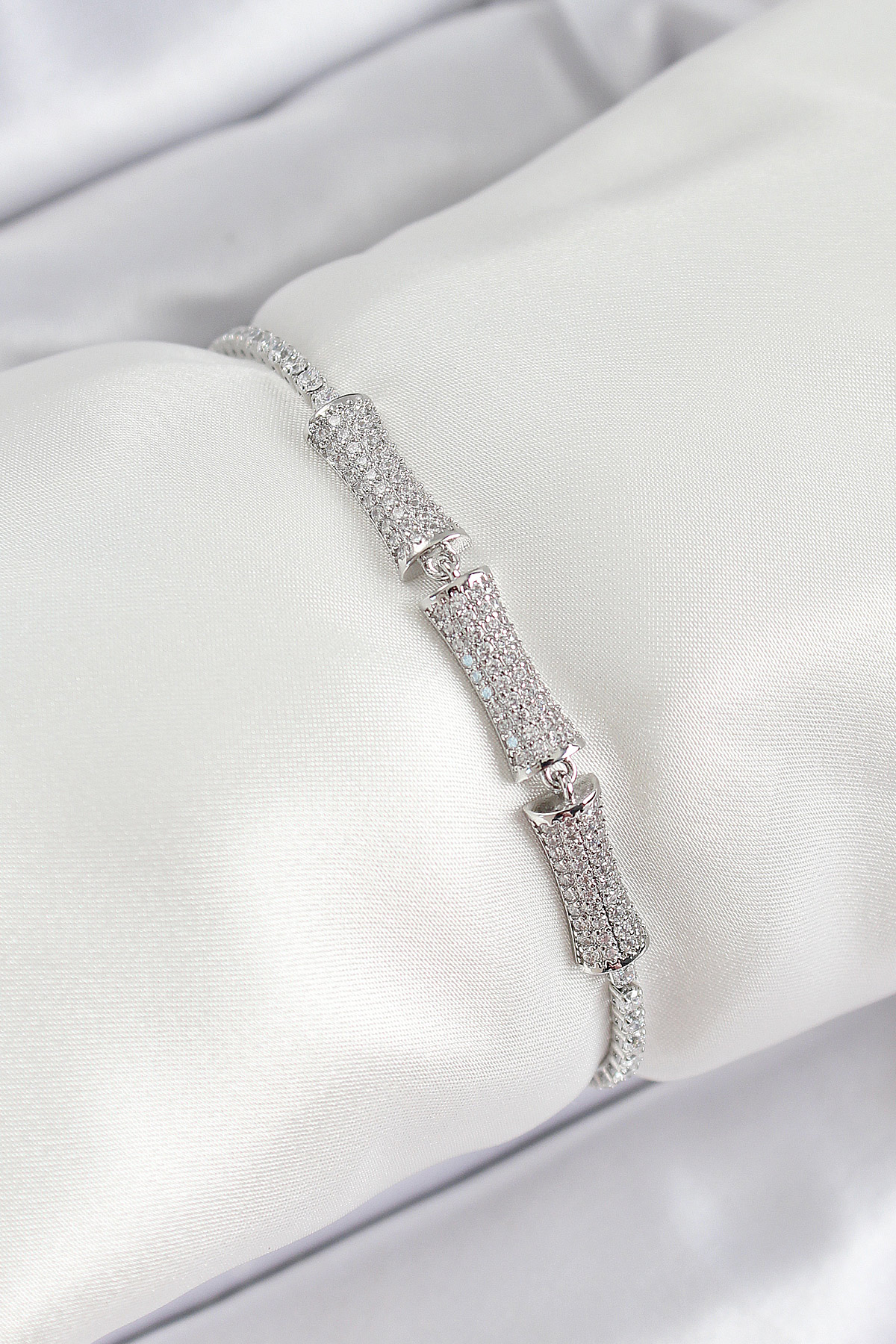 Tegan Pirinç Gümüş Renk Zirkon Taşlı Kemik Model Kadın Bileklik TG27BB7071
