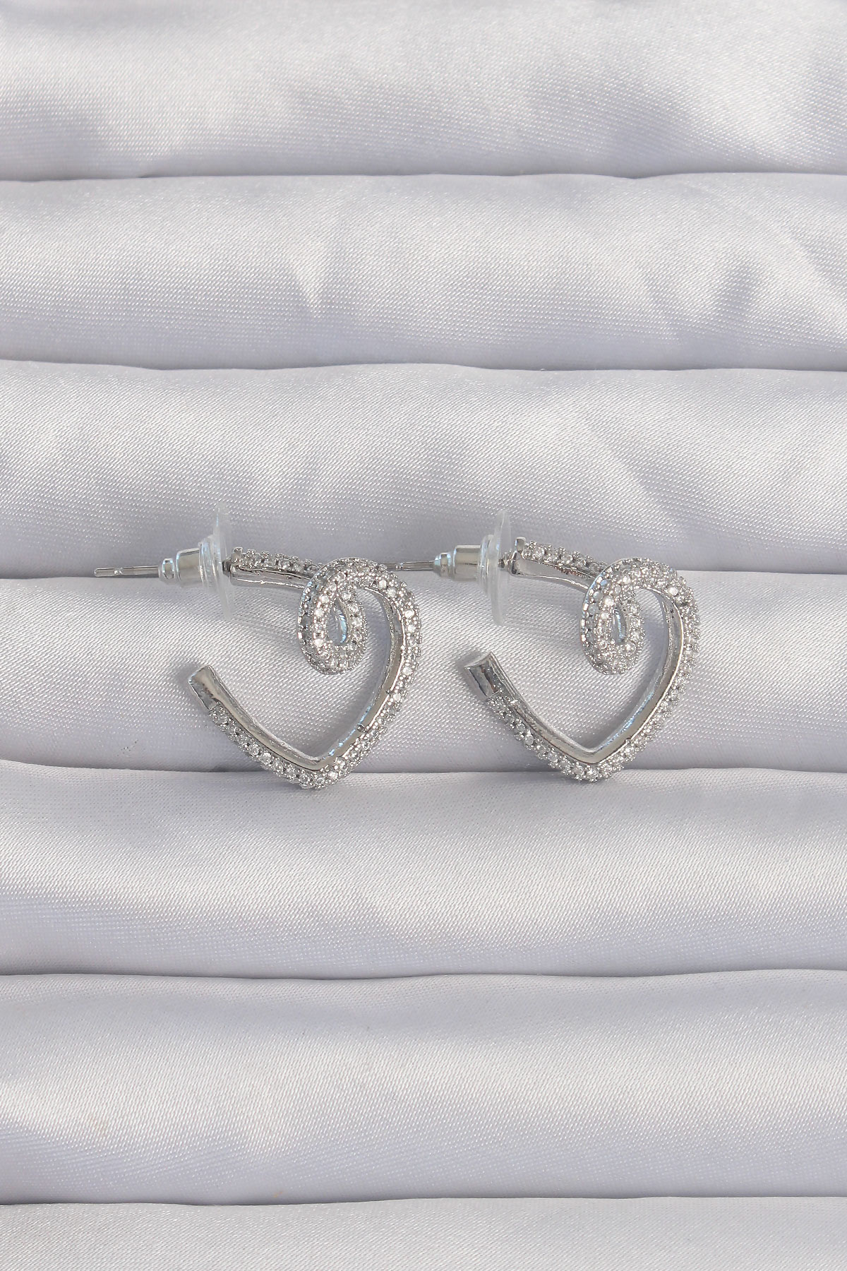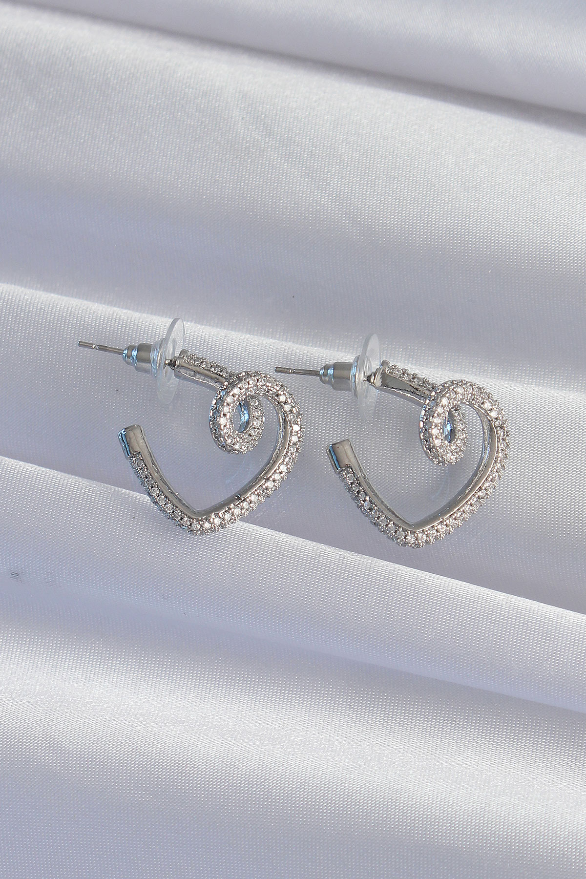 Tegan Pirinç Gümüş Renk Zirkon Taşlı Kıvrımlı Yarım Kalp Küpe TG27BKP9278