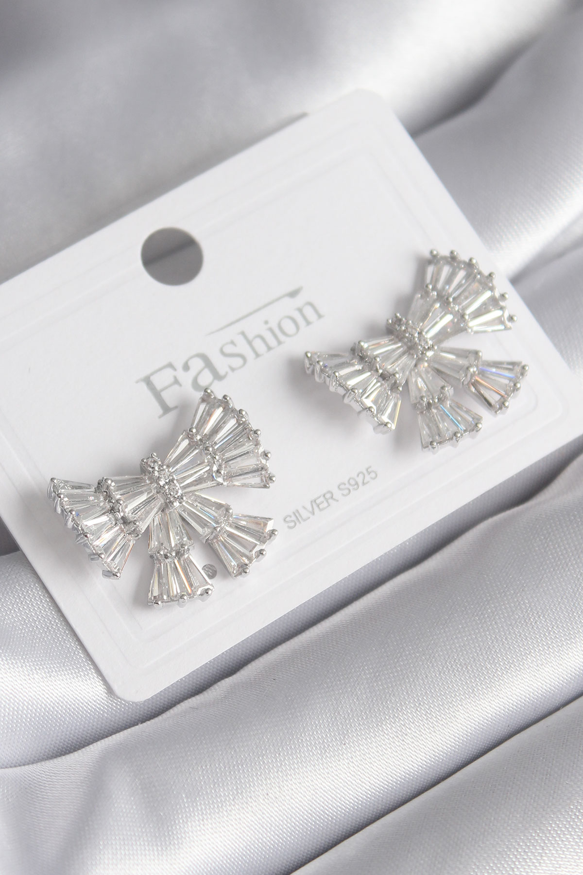 Tegan Pirinç Gümüş Renk Zirkon Taşlı Kurdele Model Kadın Küp TG27BKP8600