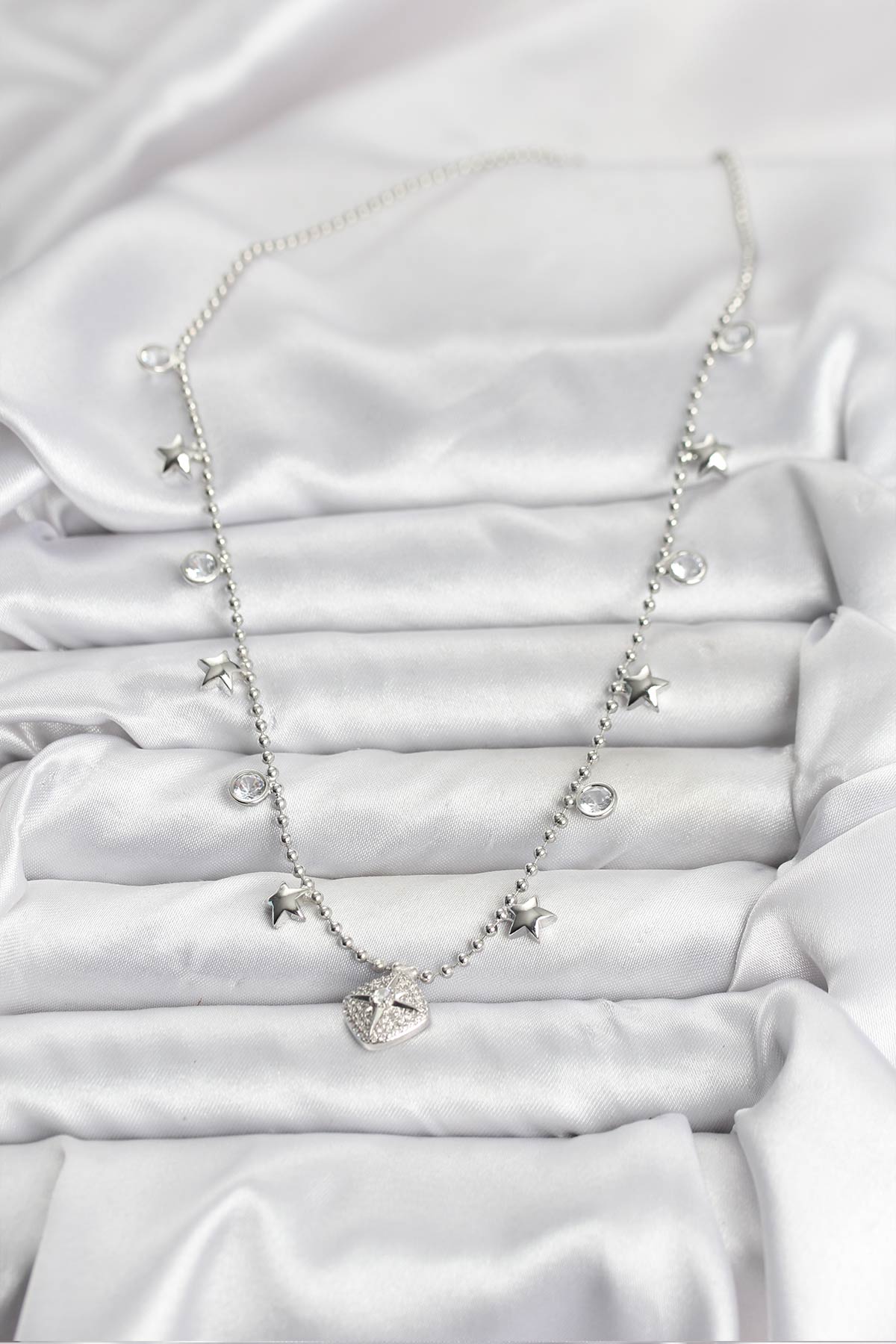 Tegan Pirinç Gümüş Renk Zirkon Taşlı Kutup Yıldızı Model Kadın Kolye TG27BKO10659