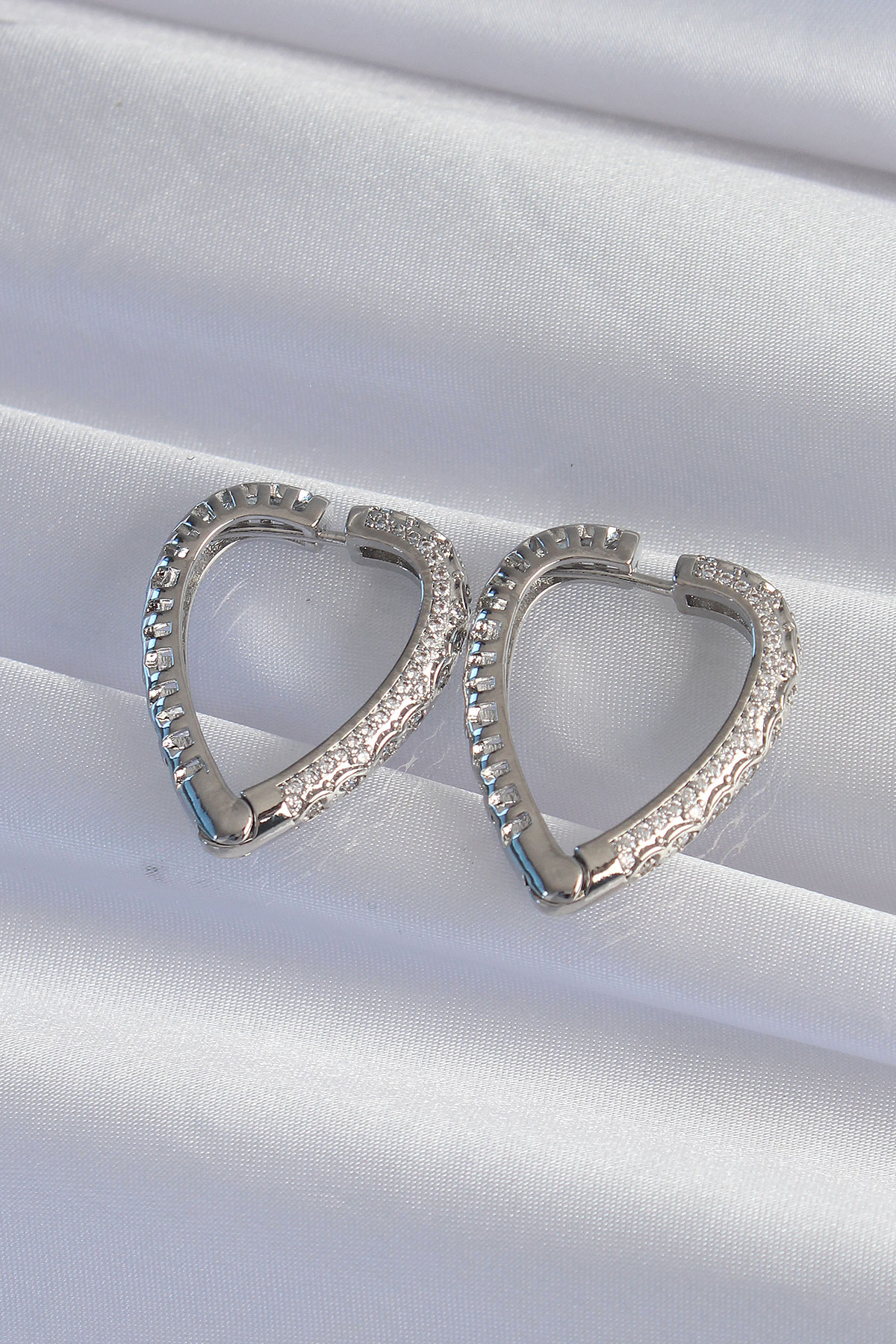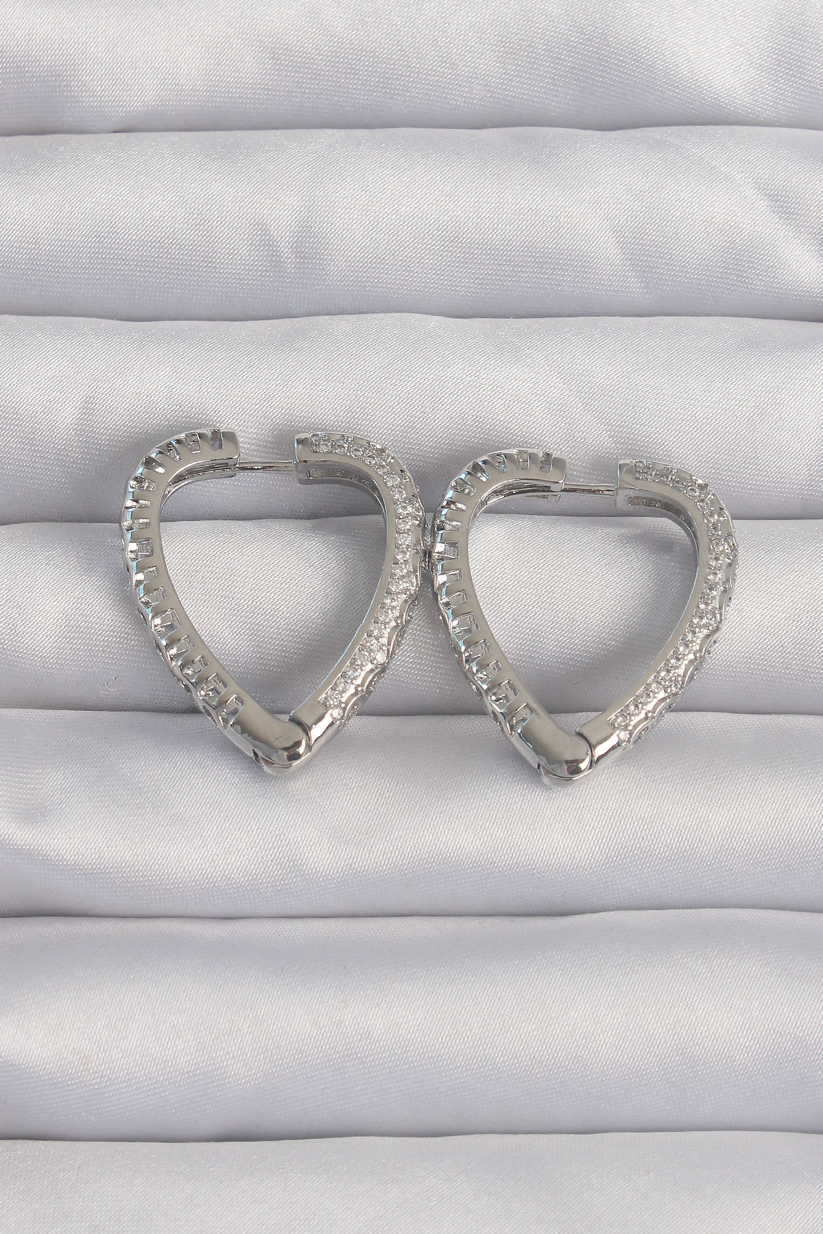Tegan Pirinç Gümüş Renk Zirkon Taşlı Motifli Kalp Küpe TG27BKP9284