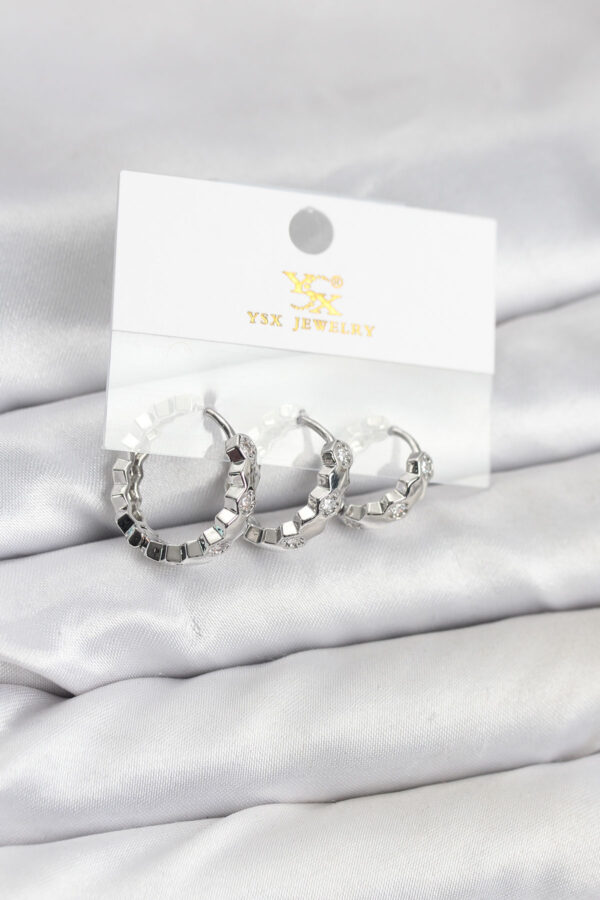Tegan Pirinç Gümüş Renk Zirkon Taşlı Petek Halka Model YSX Trio Küpe Seti TG27BKP11567