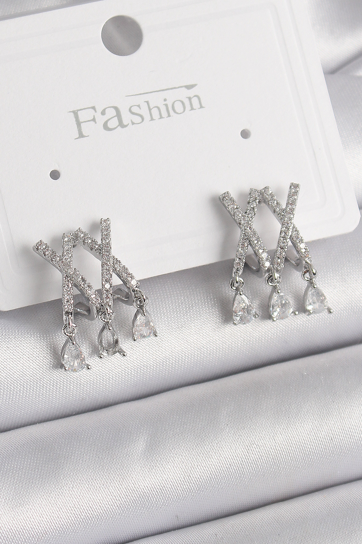 Tegan Pirinç Gümüş Renk Zirkon Taşlı X Model Sallantı Detay Kadın Küpe TG27BKP9873