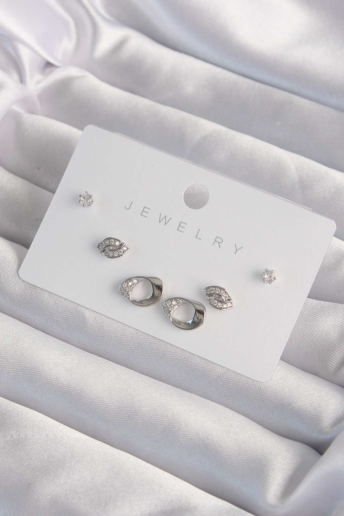 Tegan Pirinç Gümüş Renk Zirkon Taşlı Yaprak Model Küpe Seti TG27BKP9324