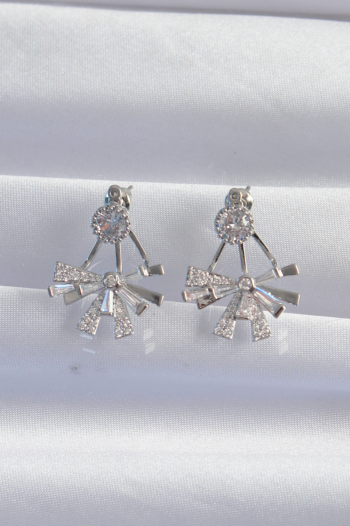 Tegan Pirinç Gümüş Renk Zirkon Taşlı Yassı Fiyonk Model Küpe TG27BKP9300