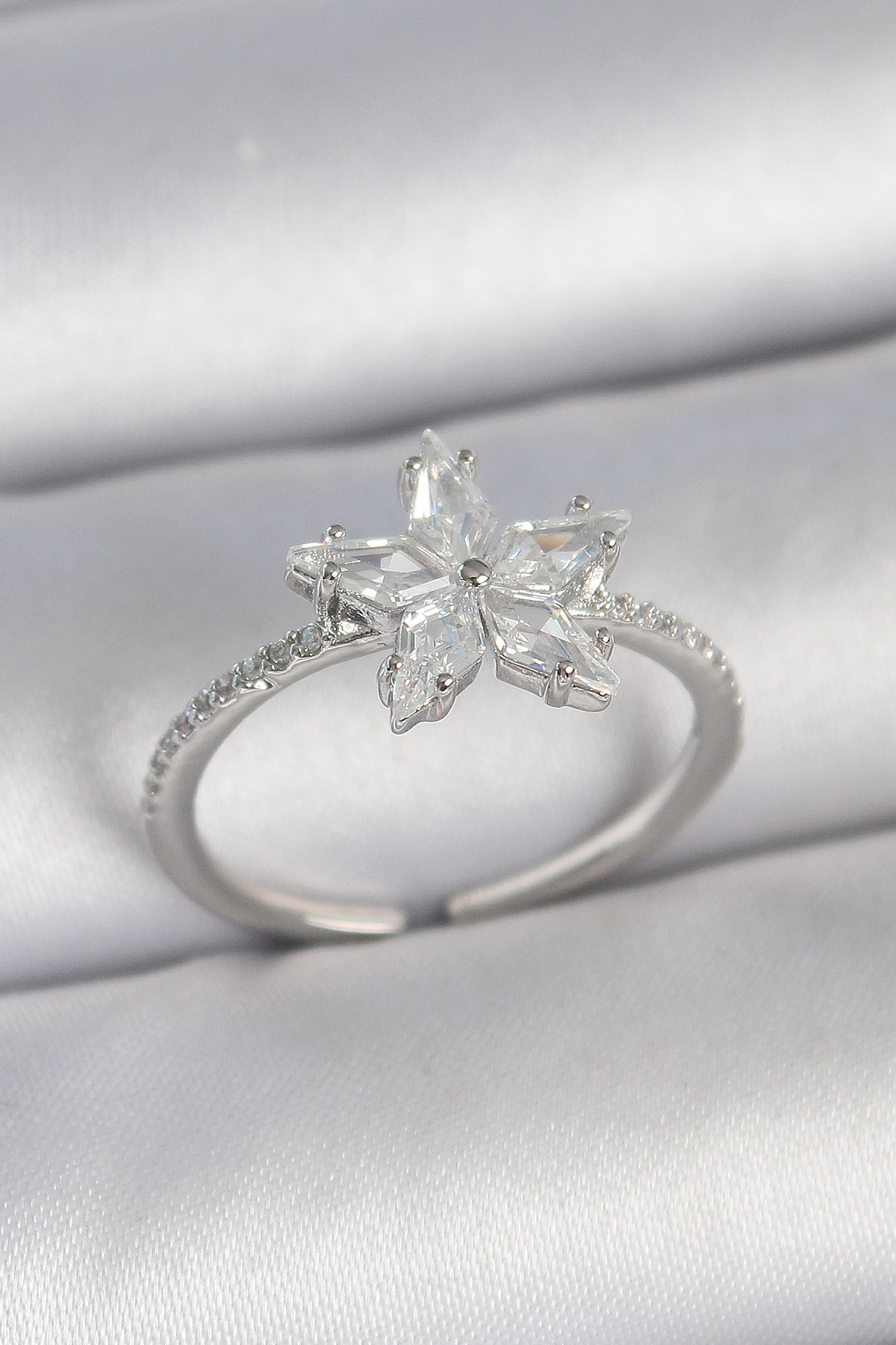 Tegan Pirinç Gümüş Renk Zirkon Taşlı Yıldız Model Ayarlanabilir Kadın Yüzük TG27BYK3716