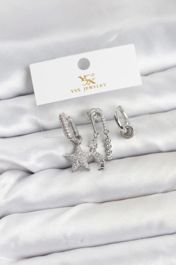 Tegan Pirinç Gümüş Renk Zirkon Taşlı Yıldız Vintage Model YSX Trio Küpe Seti TG27BKP11563