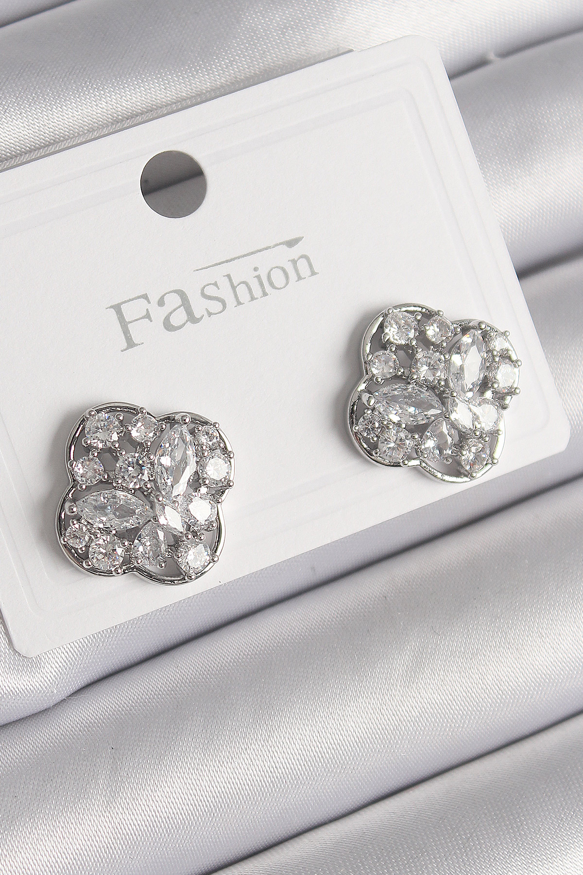 Tegan Pirinç Gümüş Renk Zirkon Taşlı Yonca Model Kadın Küpe TG27BKP9851
