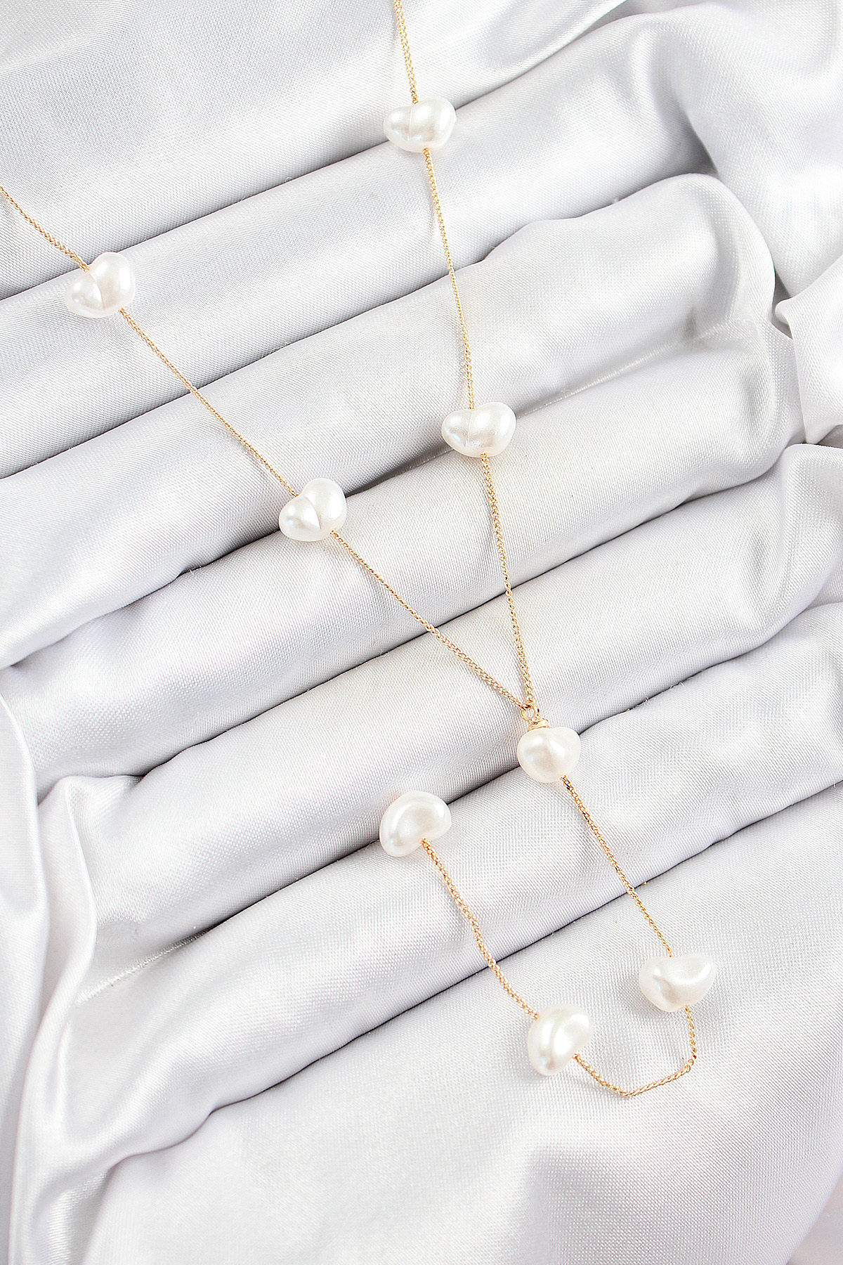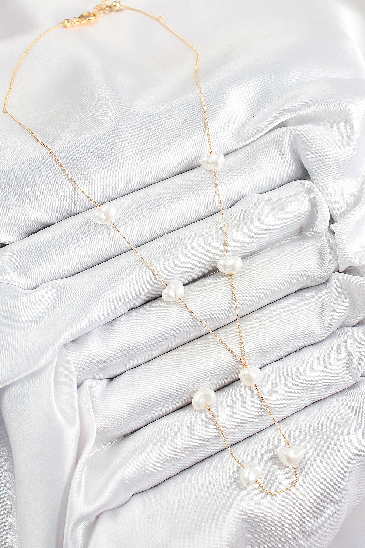 Tegan Pirinç İncili Kalp Figürlü Y Model Gold Renk Kadın Kolye TG27BKO10335
