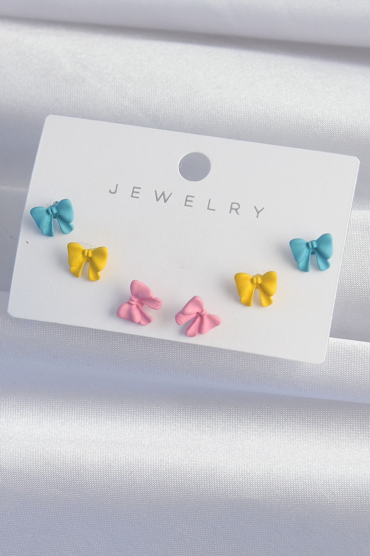 Tegan Pirinç Rengarenk Mineli Minimal Fiyonk Küpe Seti TG27BKP9319