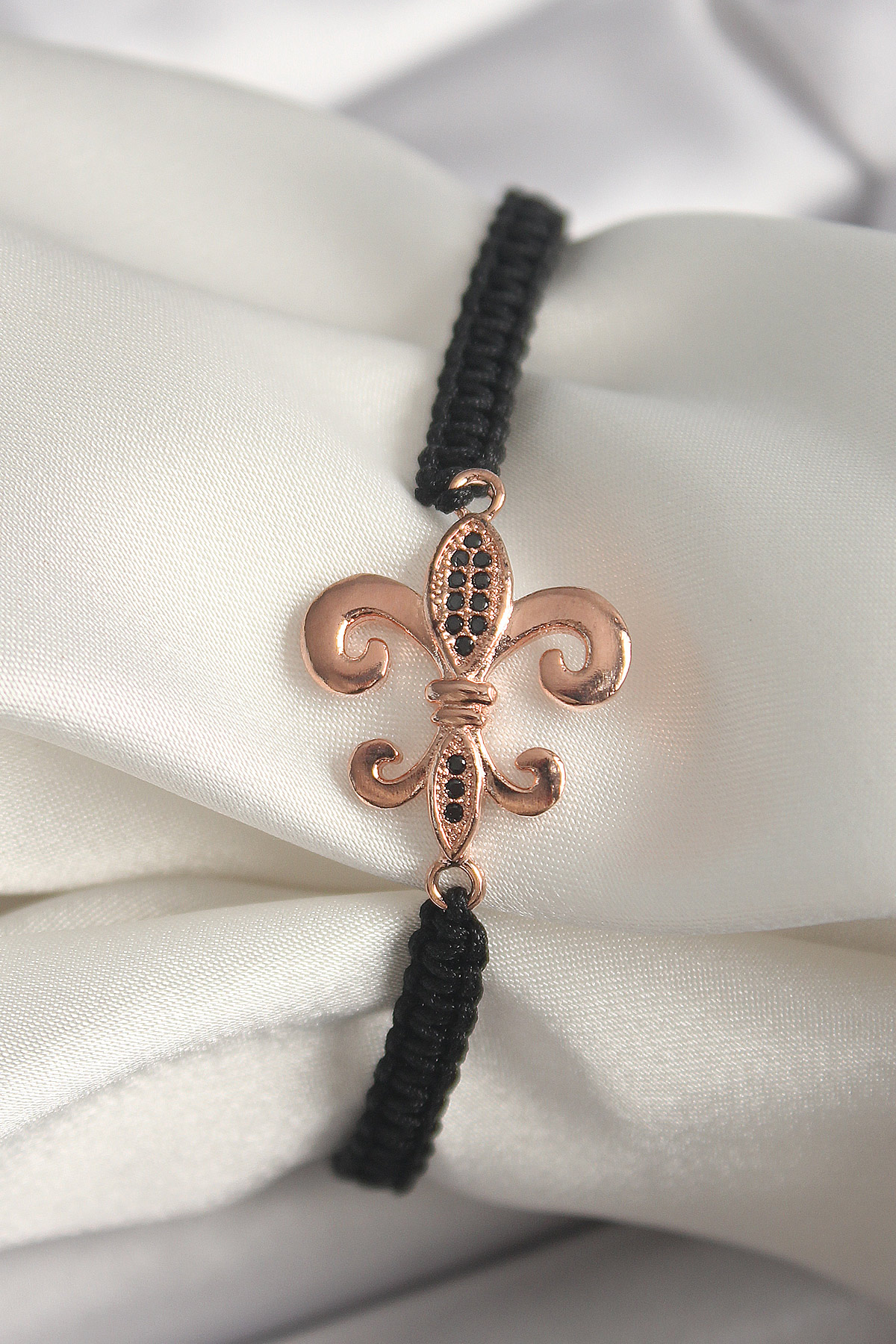 Tegan Pirinç Rose Renk Zirkon Taş İşlemeli Zambak Figür Asansörlü Makrome Model Kadın Bileklik TG27BB6808