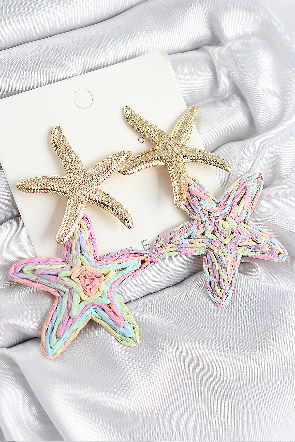 Tegan Pirinç Sallantılı Rainbow Deniz Yıldızı Model Gold Renk Hasır Küpe TG27BKP11025