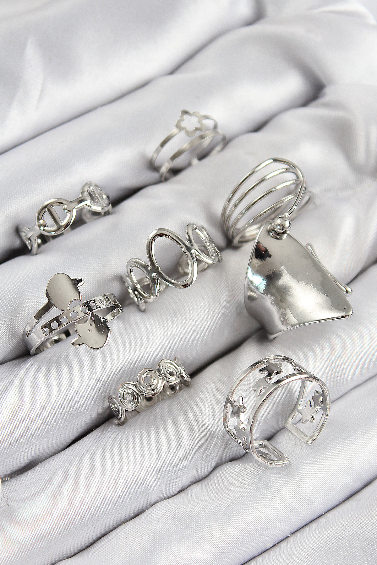 Tegan Pirinç Sarmal Ve Yıldız Model Gümüş Renk Kadın Yüzük Kombin Set TG27BYK3812