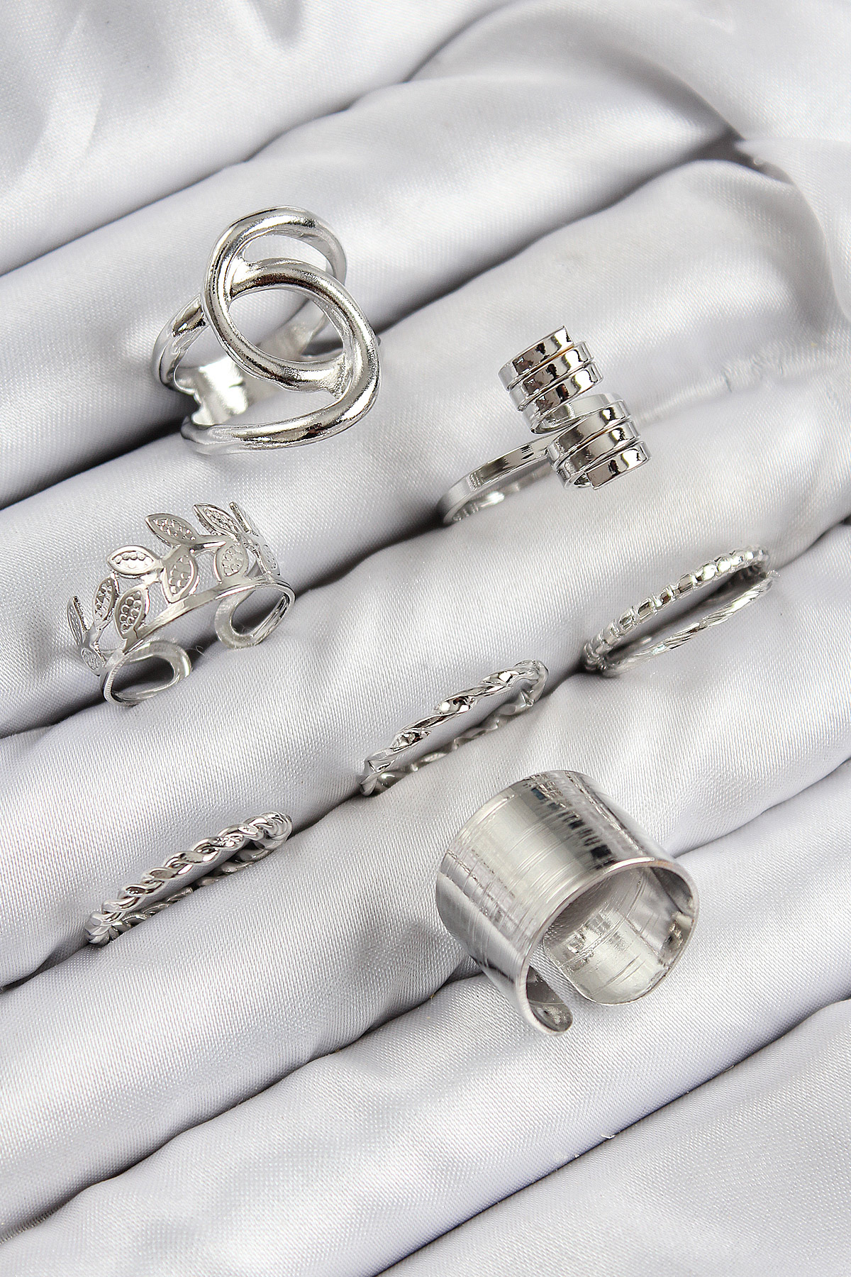 Tegan Pirinç Yaprak Model Gümüş Renk Kadın Yüzük Kombin Set TG27BYK3818