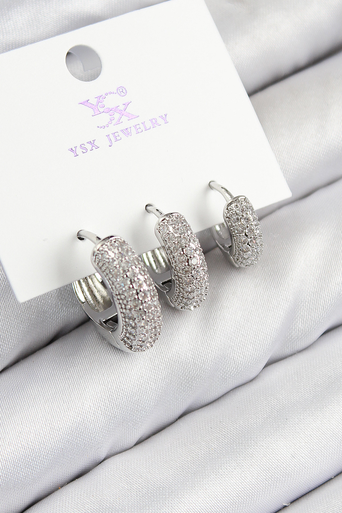 Tegan Pirinç Zirkon Taşlı 3’lü Halka Model Gümüş Renk Kadın Küpe TG27BKP11123