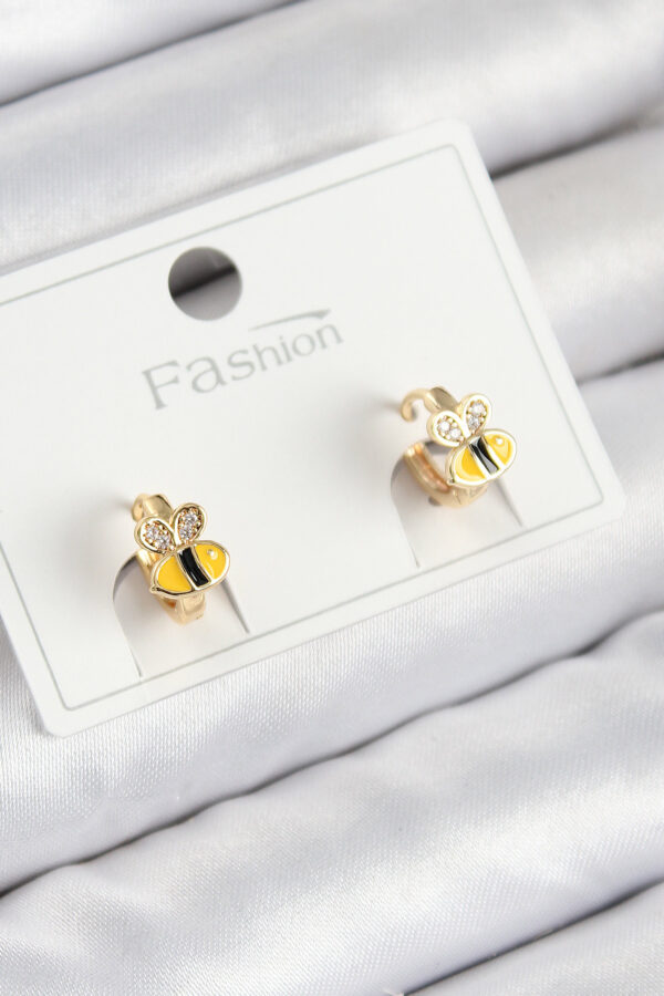 Tegan Pirinç Zirkon Taşlı Arı Model Gold Renk Çocuk Küpe TG27BKP11199