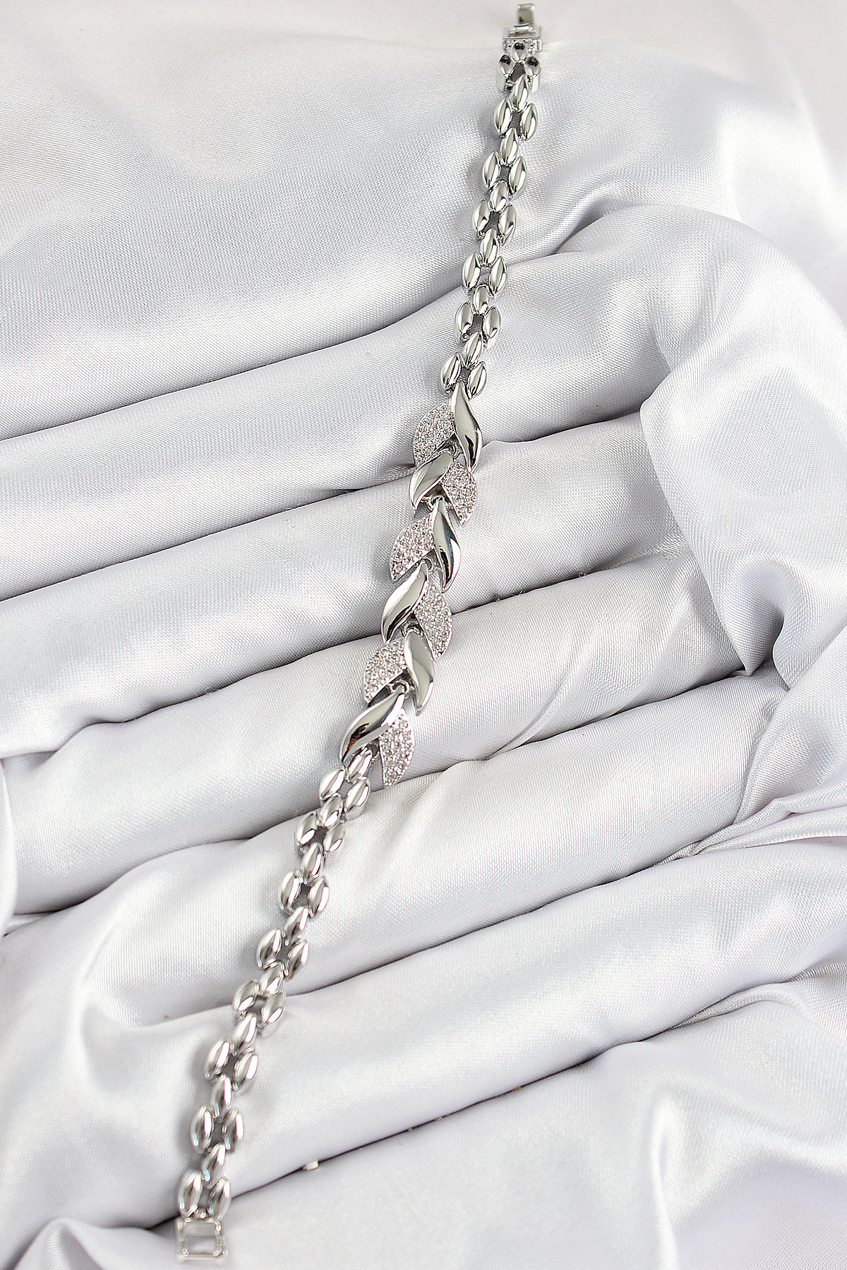 Tegan Pirinç Zirkon Taşlı Balık Kuyruğu Model Gümüş Renk Kadın Bileklik TG27BB7530