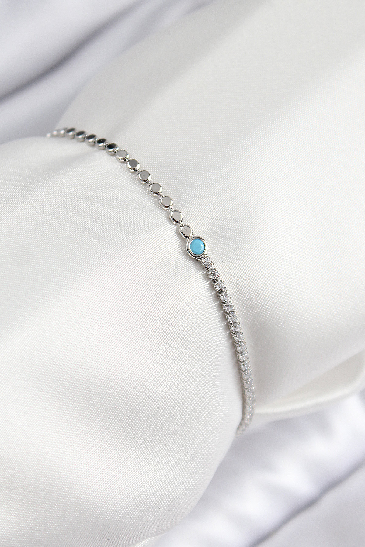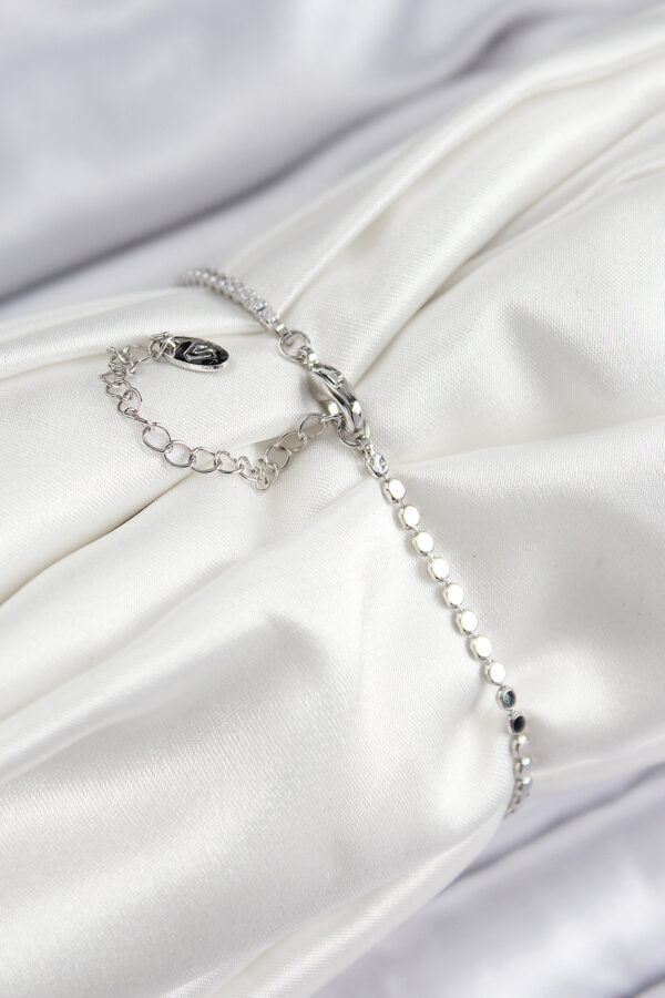 Tegan Pirinç Zirkon Taşlı Boncuk Model Ezme Zincir Gümüş Renk Kadın Bileklik TG27BB7598