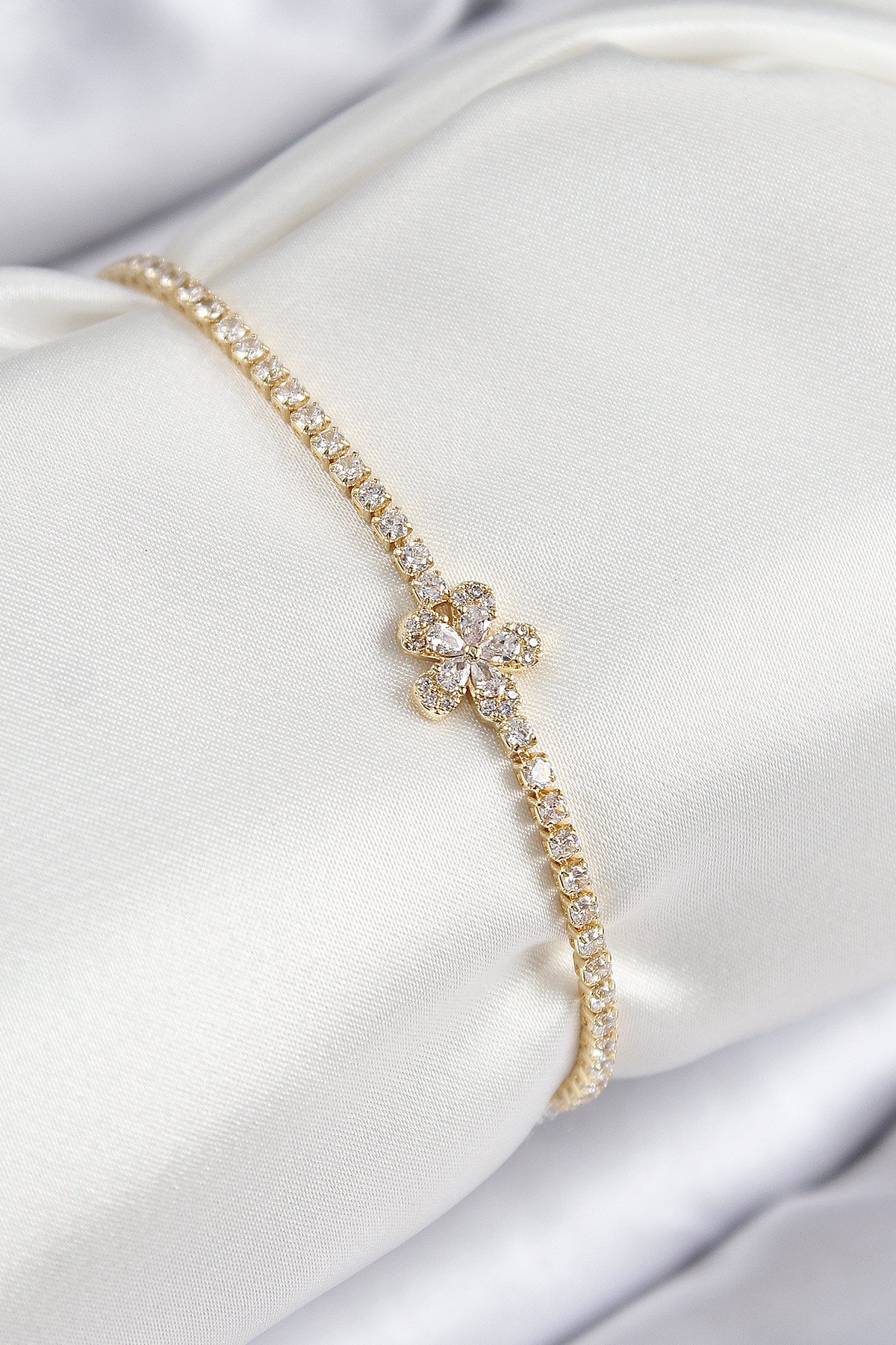 Tegan Pirinç Zirkon Taşlı Çiçek Model Gold Renk Kadın Bileklik TG27BB7709