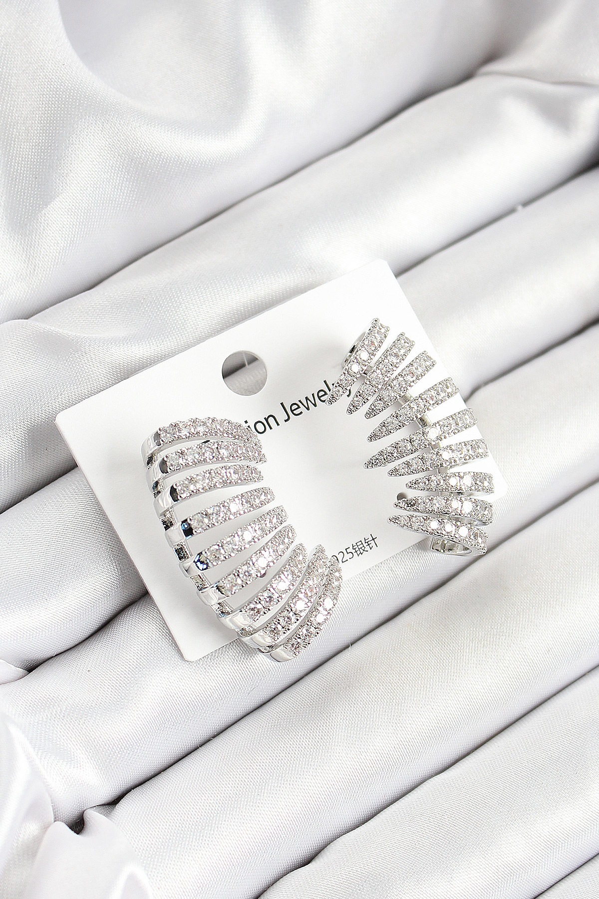 Tegan Pirinç Zirkon Taşlı Çoklu Görünümlü Model Gümüş Renk Kadın Küpe TG27BKP10631
