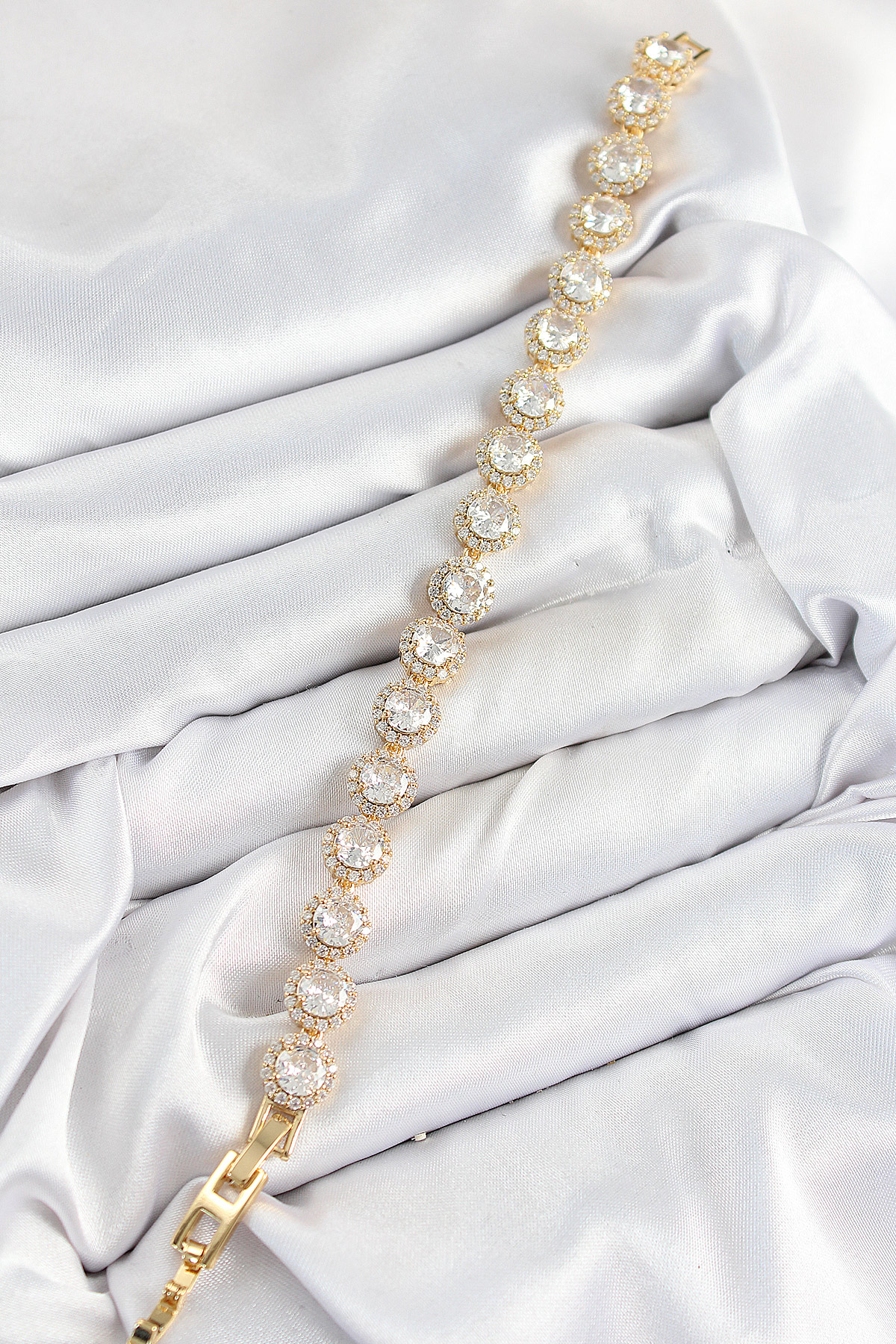 Tegan Pirinç Zirkon Taşlı Daire Baget Model Gold Renk VIP Seri Kadın Bileklik TG27BB7514