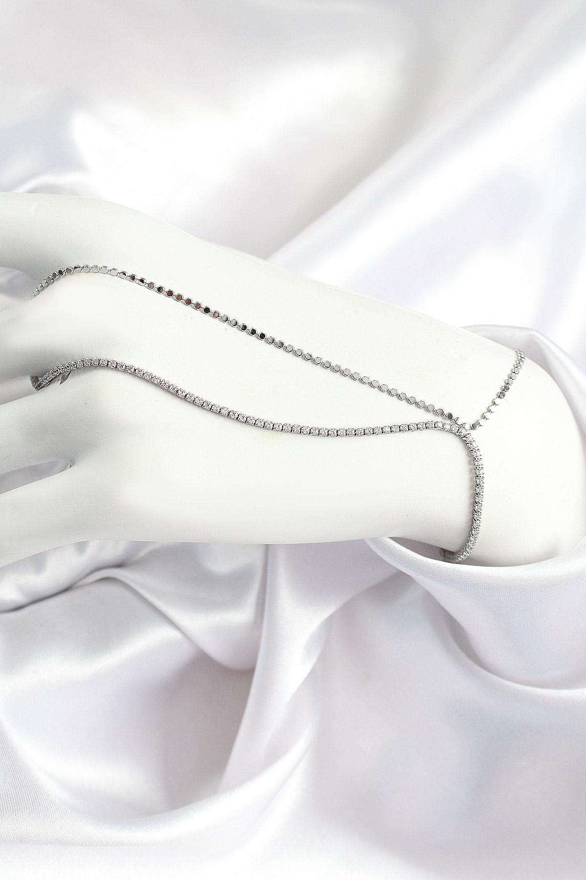 Tegan Pirinç Zirkon Taşlı Ezme Zincir Model Gümüş Renk Kadın Şahmeran TG27SN690