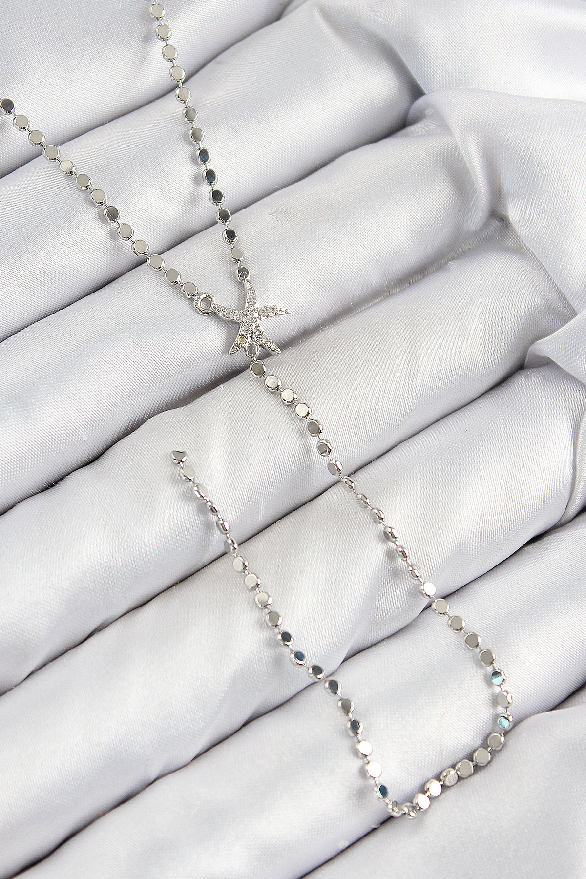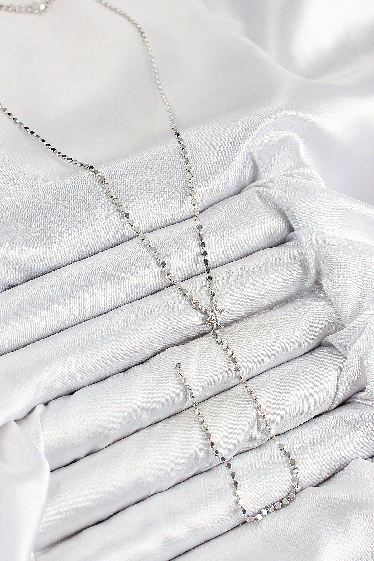 Tegan Pirinç Zirkon Taşlı Ezme Zincirli Deniz Yıldızı Model Gümüş Renk Y Kolye TG27BKO10466