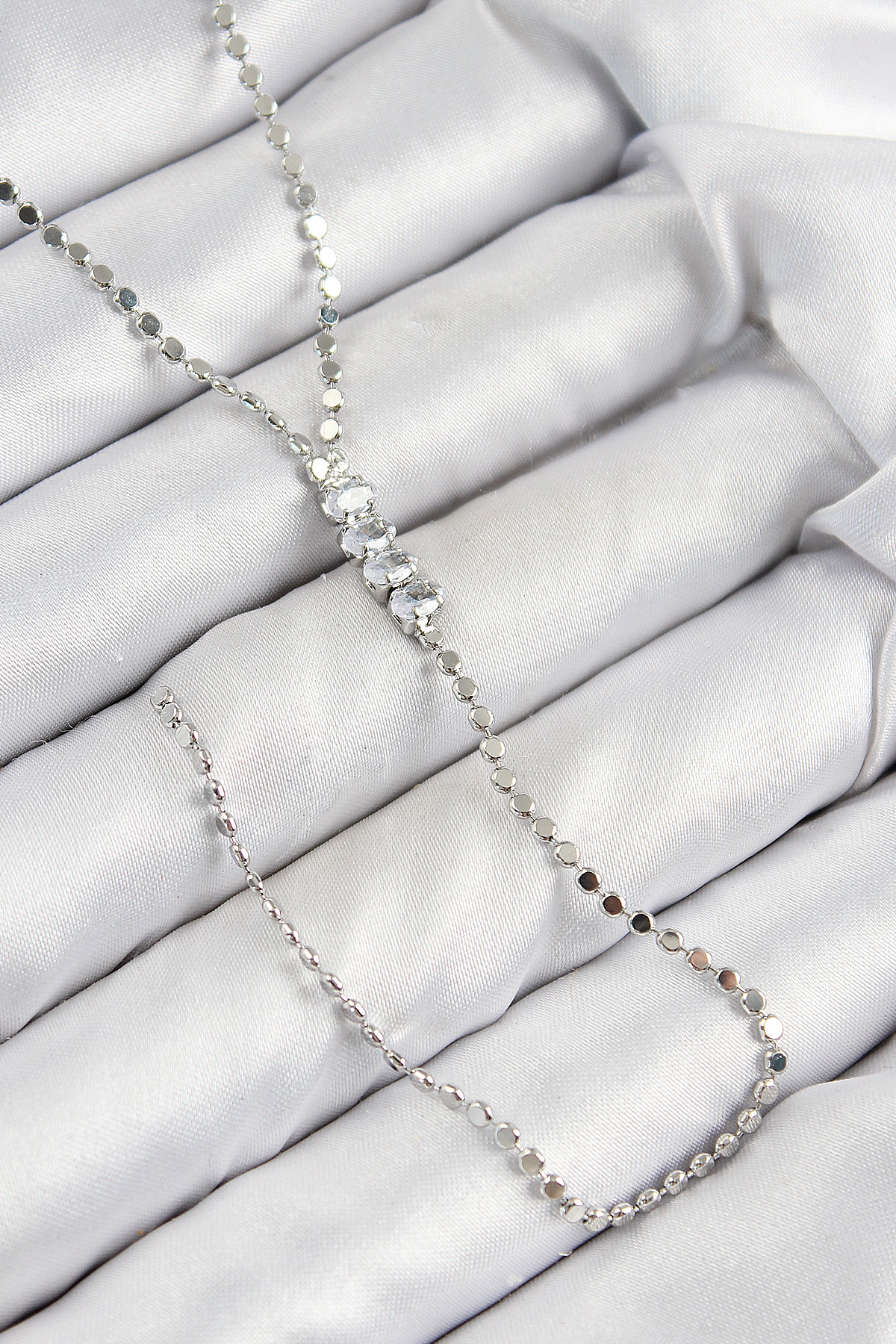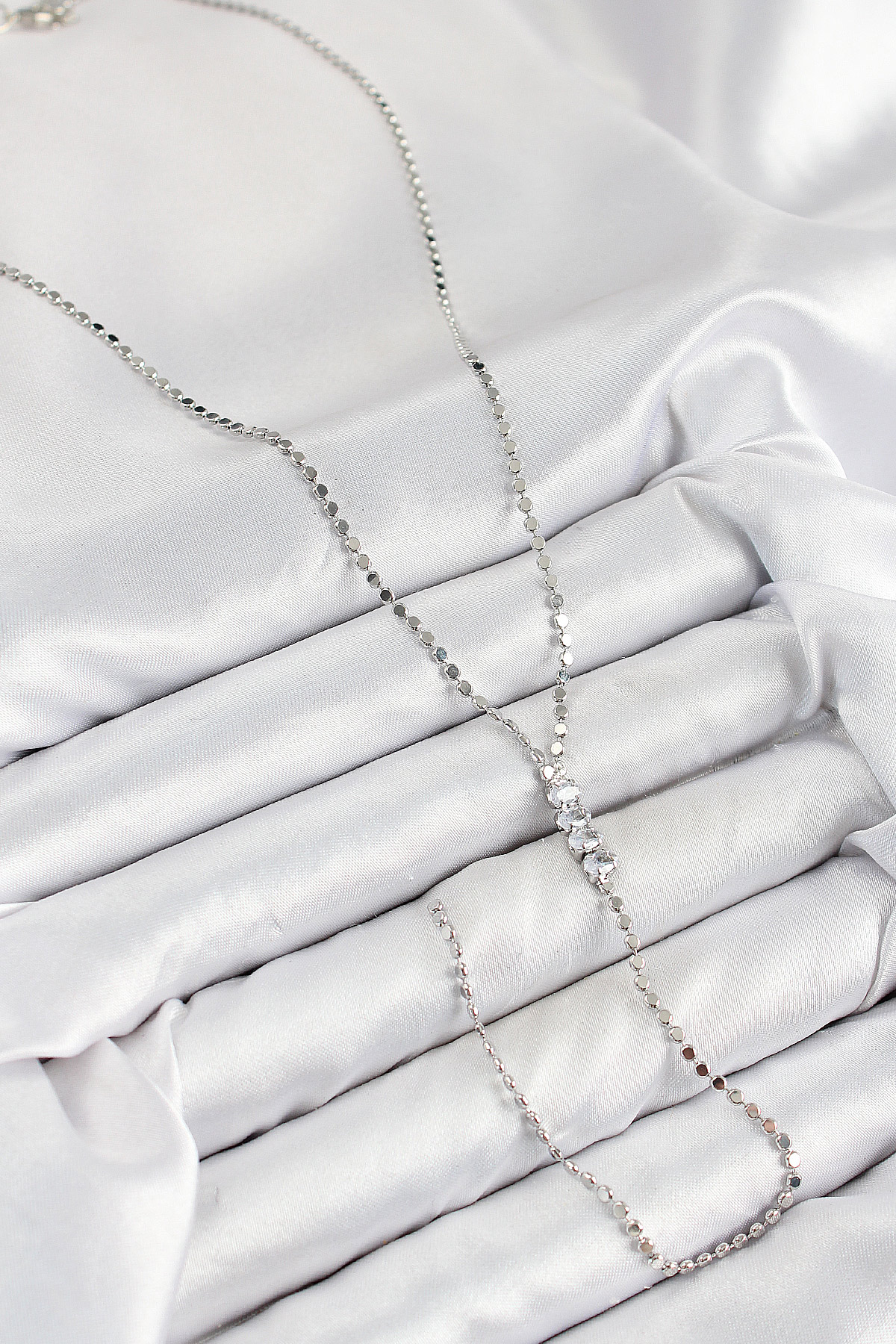 Tegan Pirinç Zirkon Taşlı Ezme Zincirli Model Gümüş Renk Y Kolye TG27BKO10464