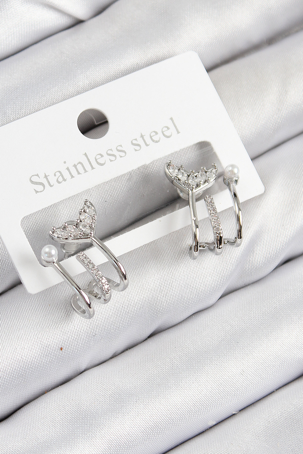 Tegan Pirinç Zirkon Taşlı İnci Detaylı Balık Kuyruğu Model Gümüş Renk Kadın Küpe TG27BKP11094