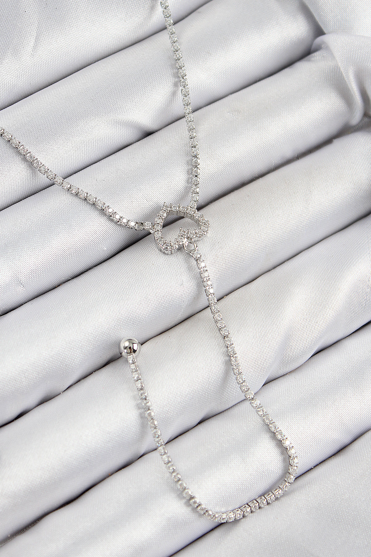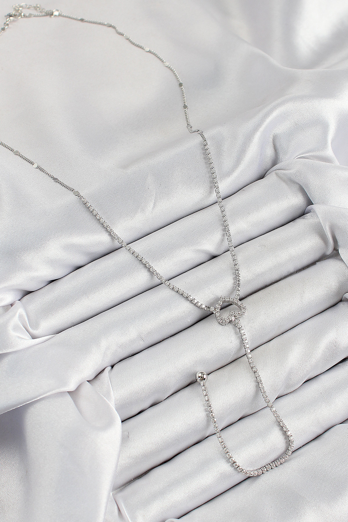 Tegan Pirinç Zirkon Taşlı Kalp Model Gümüş Renk Y Kolye TG27BKO10447