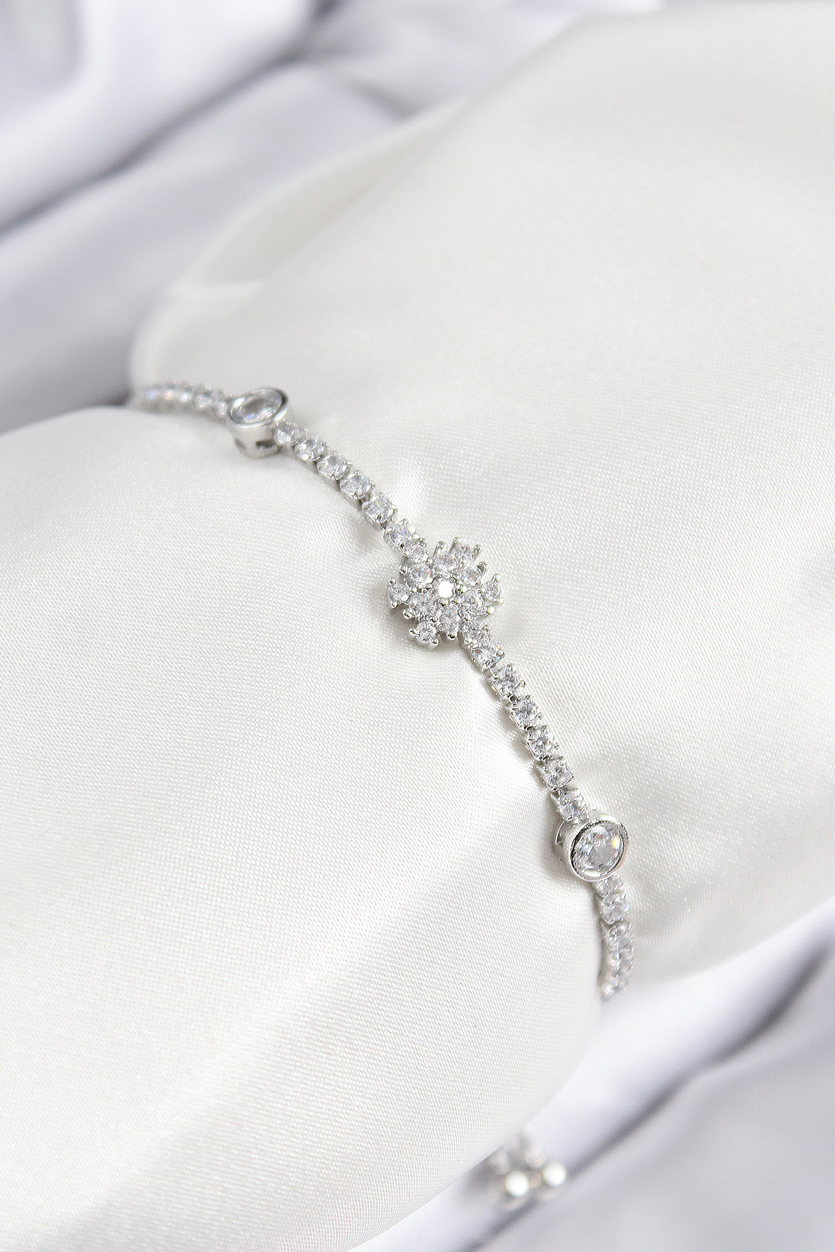 Tegan Pirinç Zirkon Taşlı Kar Tanesi Model Gümüş Renk Asansörlü Kadın Bileklik TG27BB7722