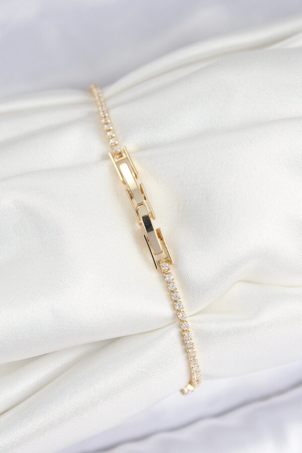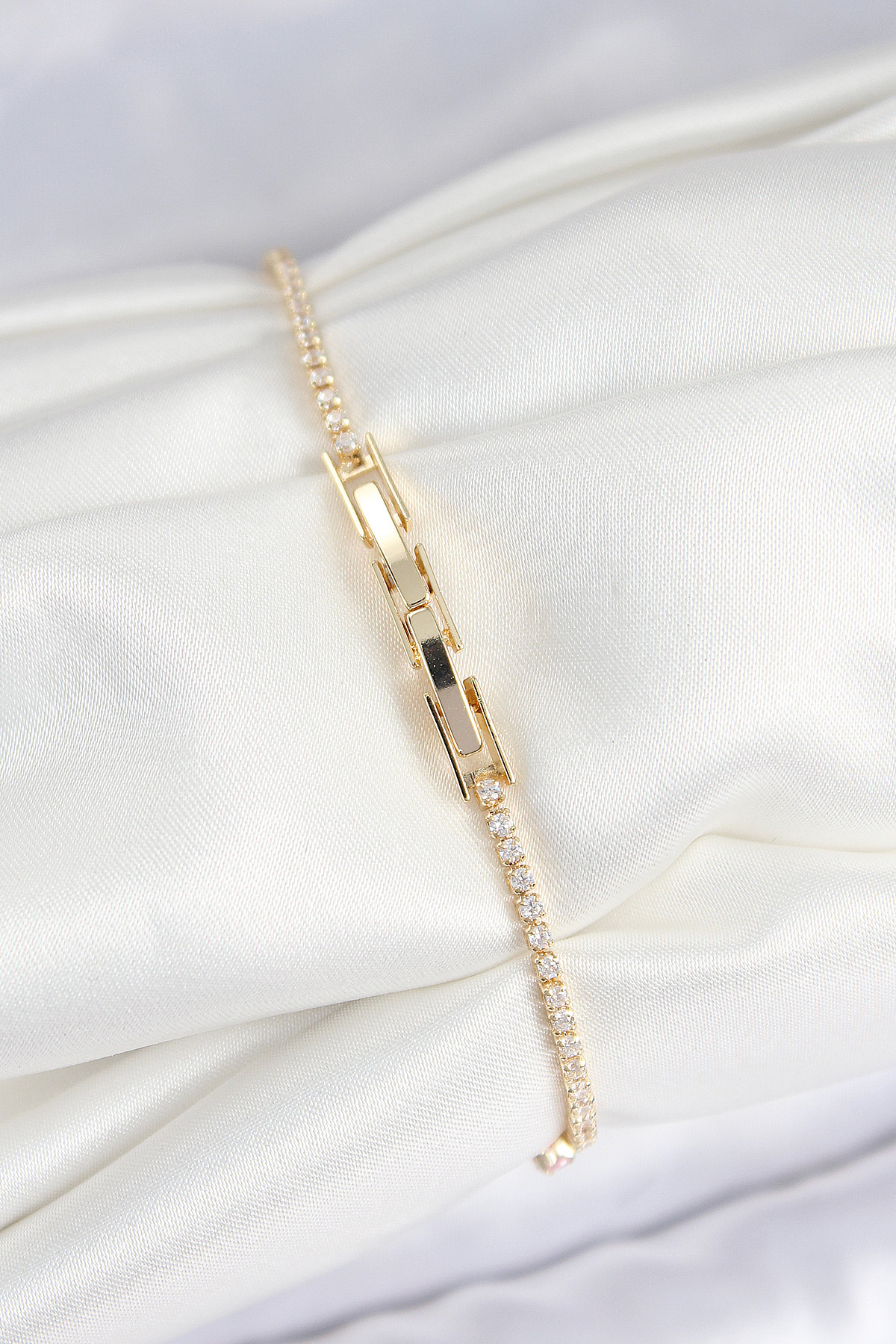 Tegan Pirinç Zirkon Taşlı Kare Model Gold Renk Kadın Bilekilk TG27BB7660
