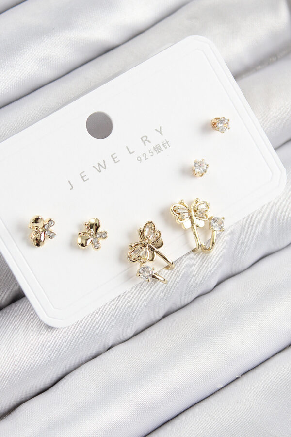 Tegan Pirinç Zirkon Taşlı Kelebek Model Gold Renk 925 Ayar Gümüş Çivi Kadın Küpe Set TG27BKP11182