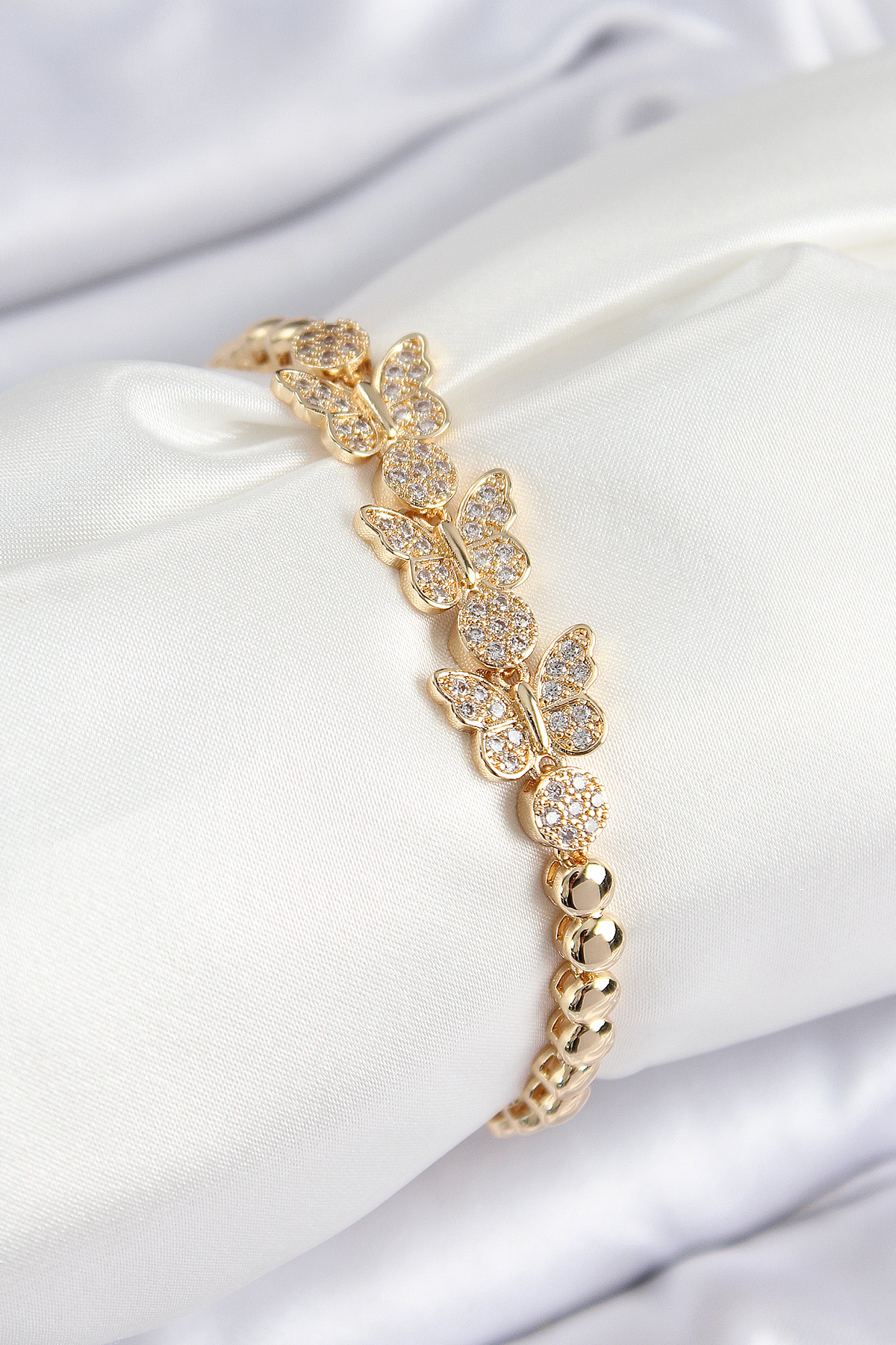 Tegan Pirinç Zirkon Taşlı Kelebek Model Gold Renk Kadın Bileklik TG27BB7891