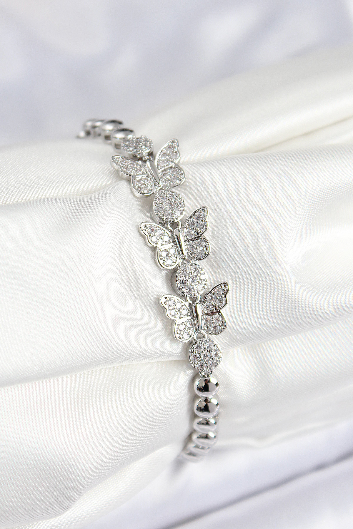 Tegan Pirinç Zirkon Taşlı Kelebek Model Gümüş Renk Kadın Bileklik TG27BB7892