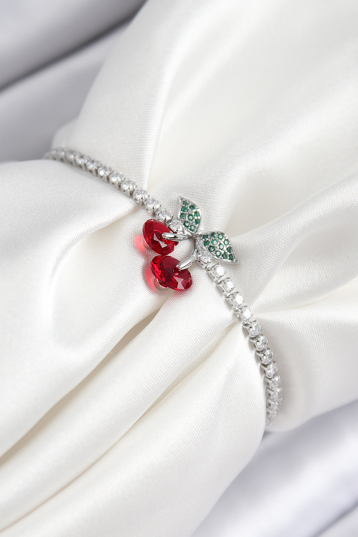 Tegan Pirinç Zirkon Taşlı Kiraz Model Gümüş Renk Asansörlü Kadın Bileklik TG27BB7454