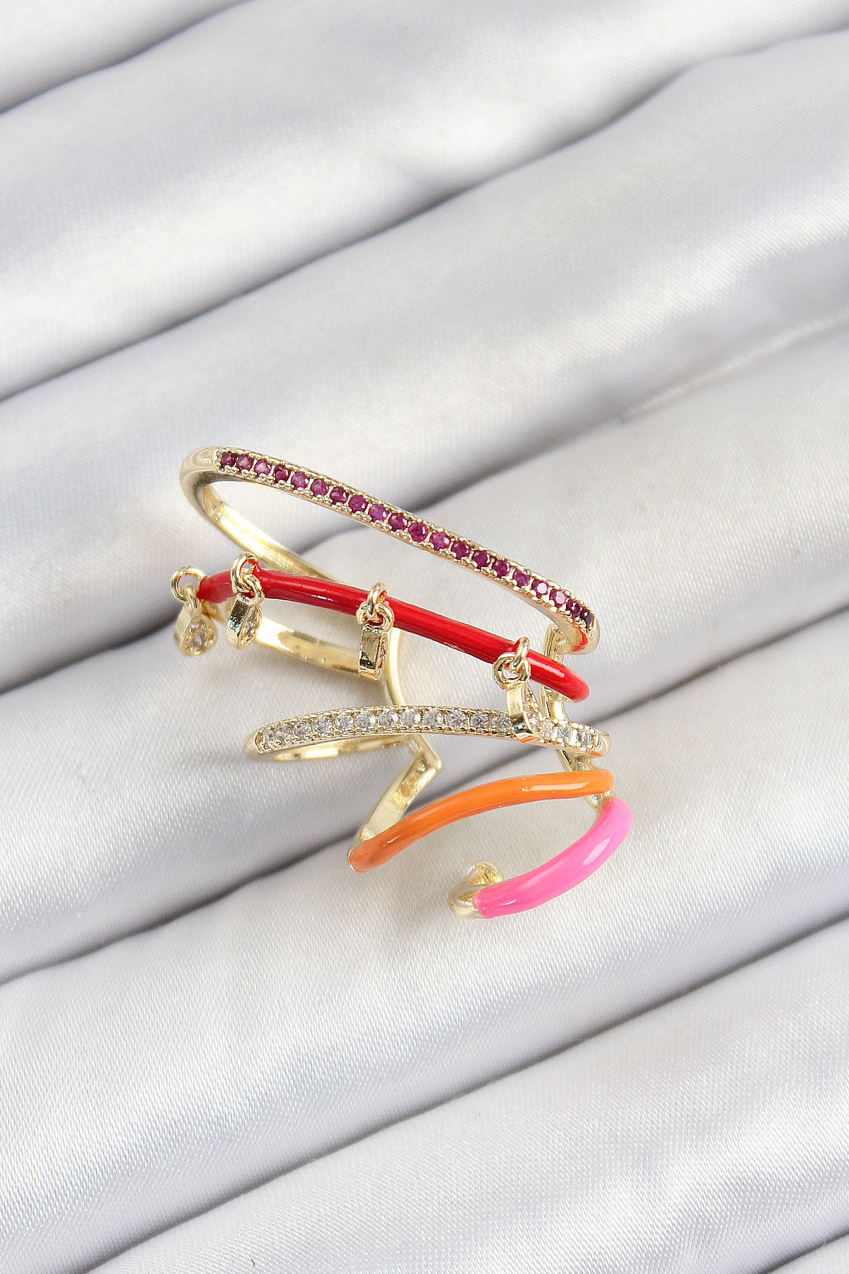 Tegan Pirinç Zirkon Taşlı Kırmızı Turuncu Pembe Sıkıştırma Sağ Kıkırdak Gold Renk Kadın Küpe TG27BKP10755