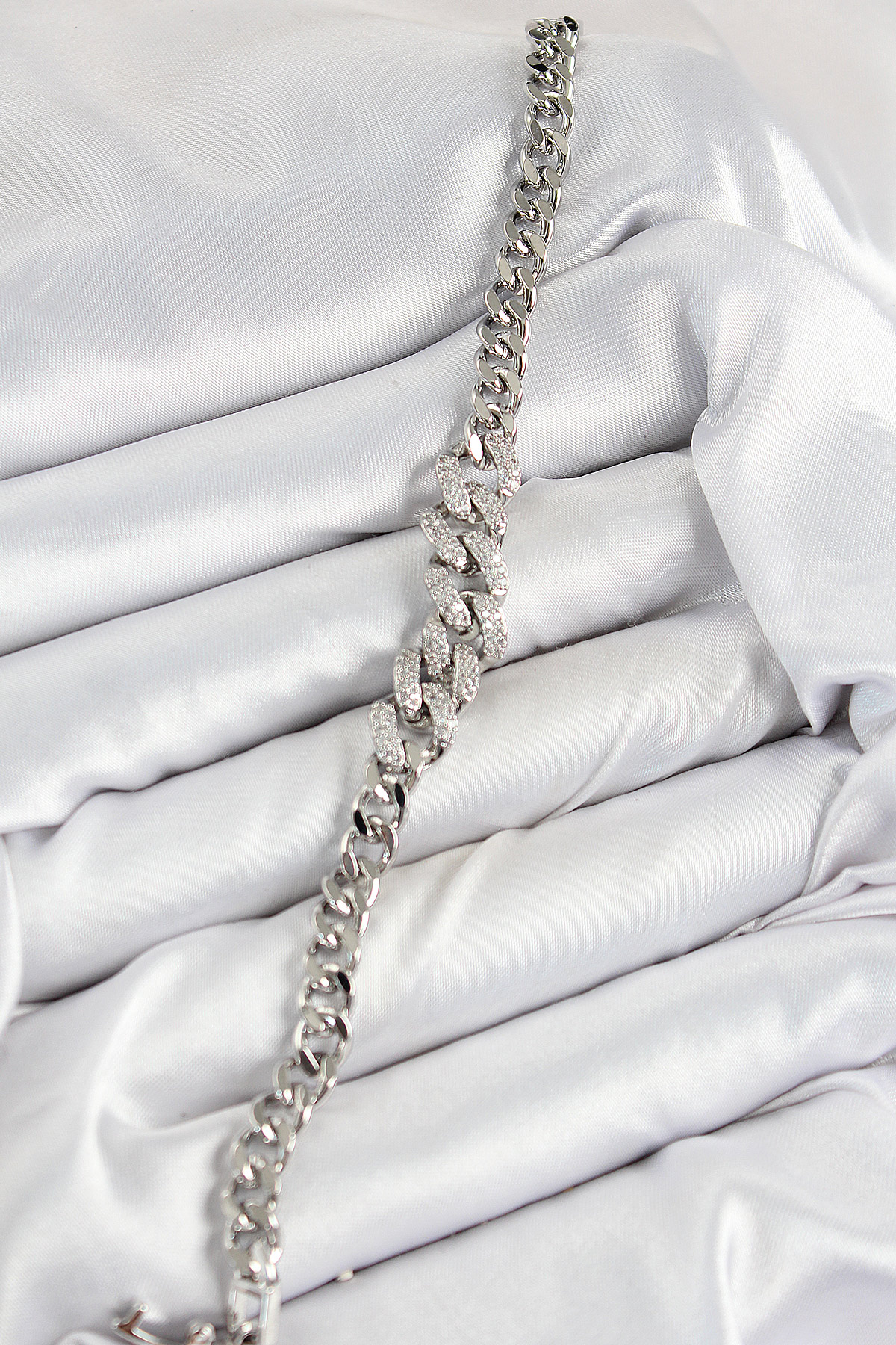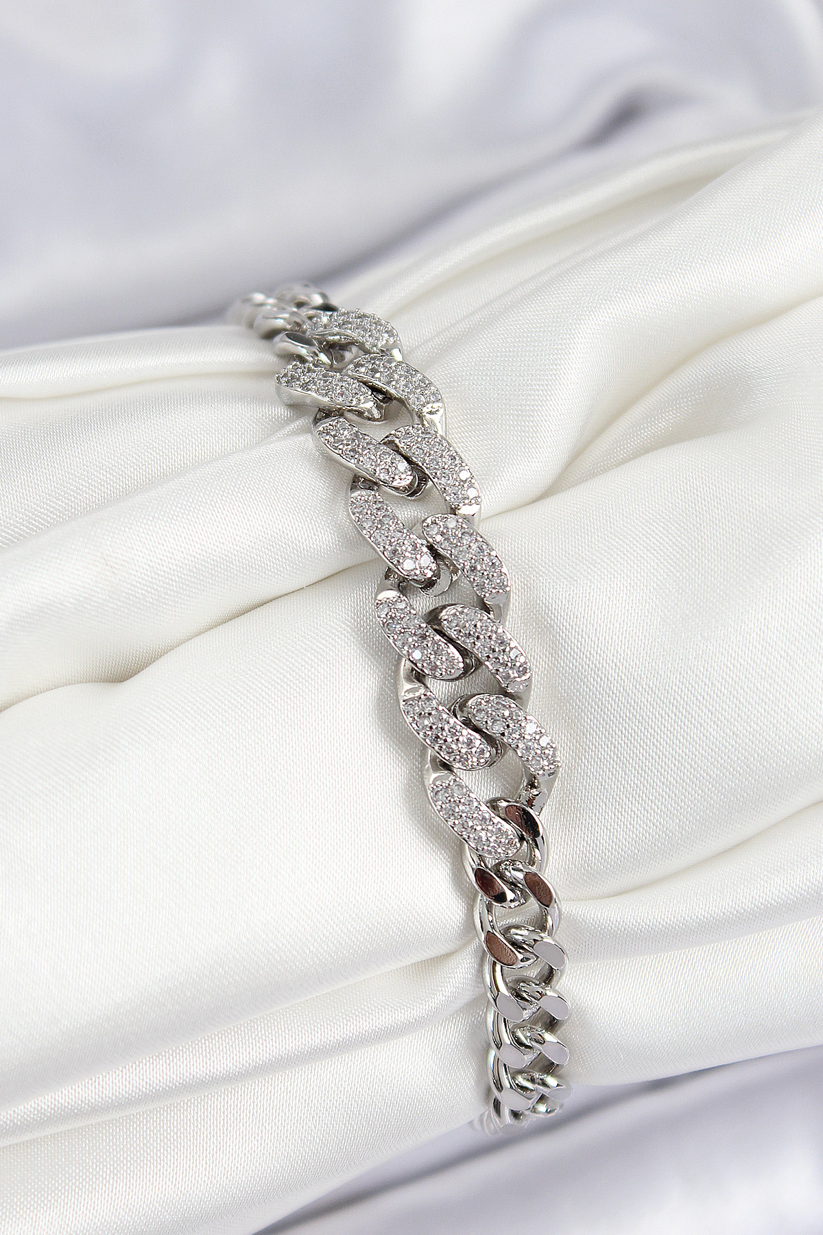 Tegan Pirinç Zirkon Taşlı Küba Zincir Model Gümüş Renk Kadın Bileklik TG27BB7534